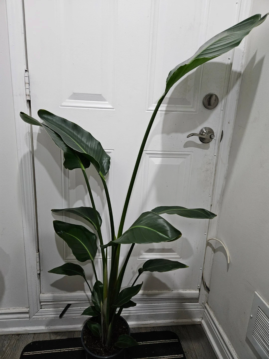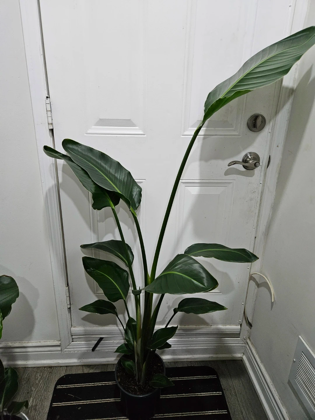A lush Bird of Paradise plant with large, green leaves. It's a beautiful statement plant for any indoor space. Adds a tropical feel to your home!