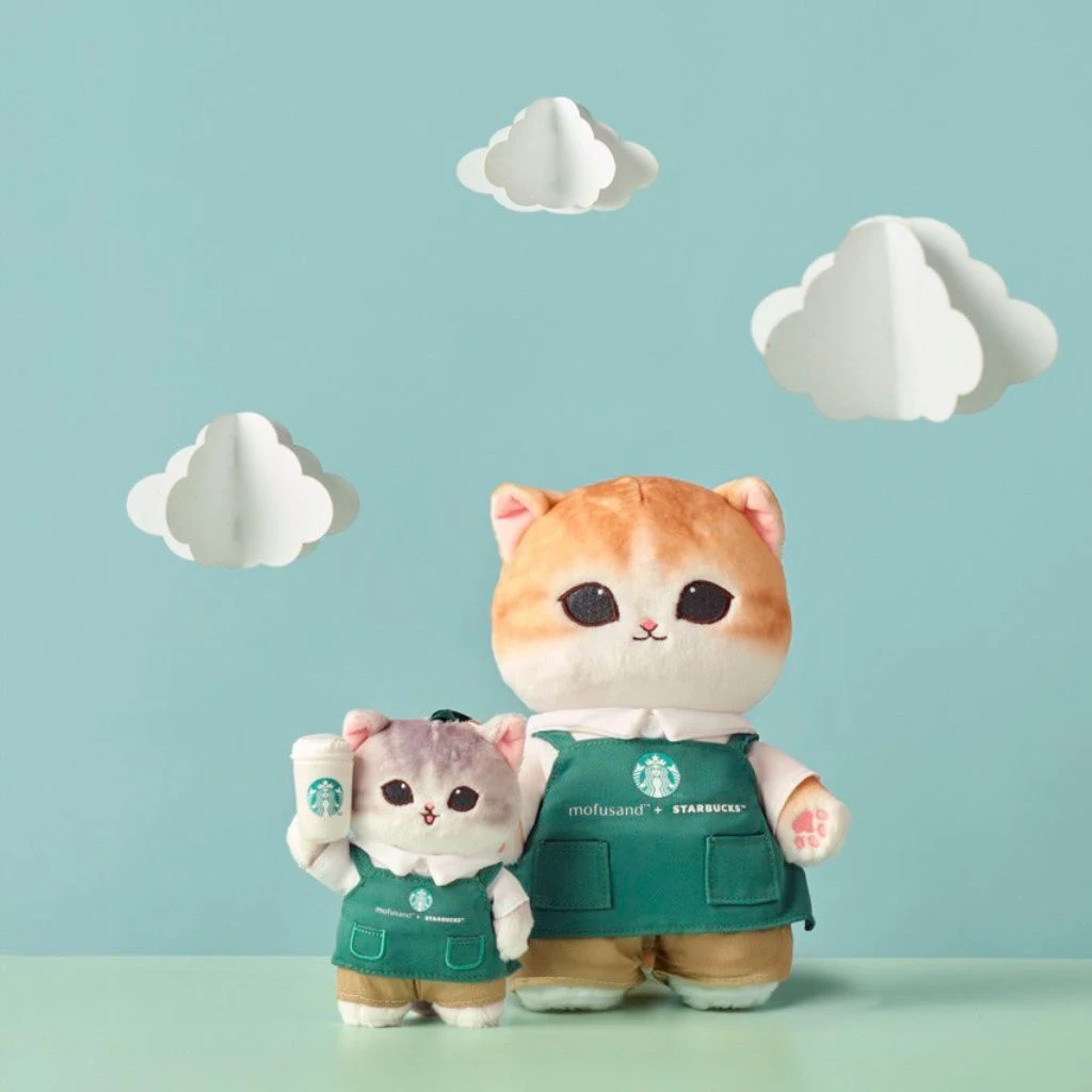 - Limited edition Starbucks collaboration keychain featuring Mofusand and a cute cat plush wearing a strawberry hat.