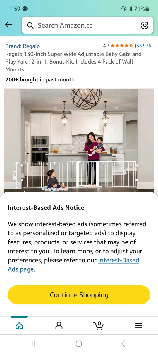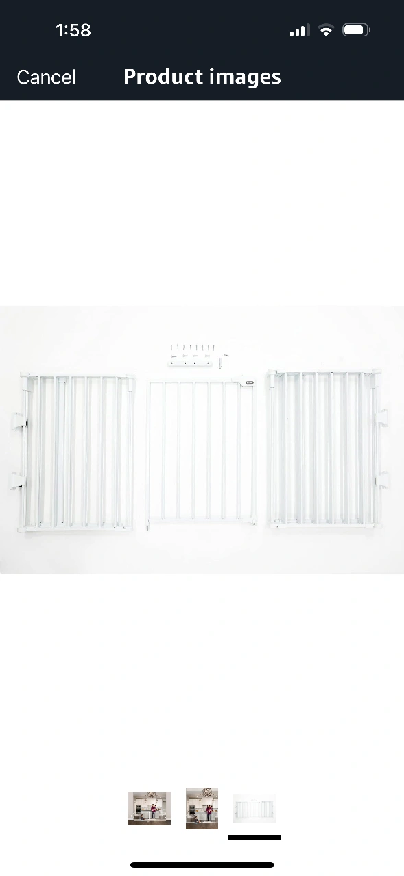 White metal baby gate. Extends to 130 inches. Includes wall mounts. Easy to install. FREE DELIVERT within Toronto