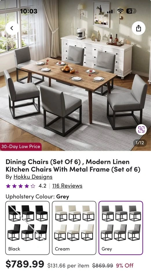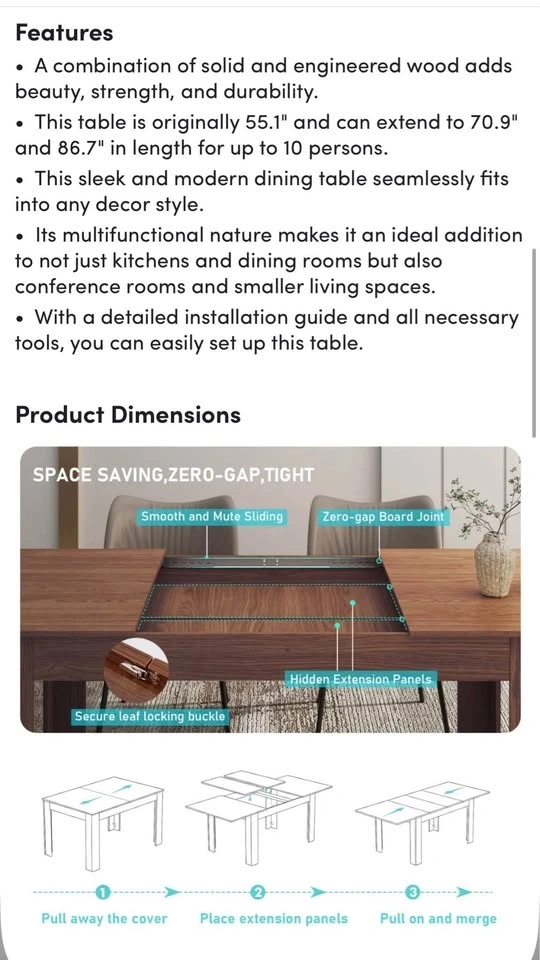 Extendable Dining Table & 6 Chairs (2 need screws)