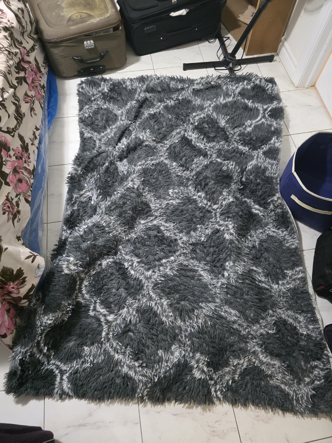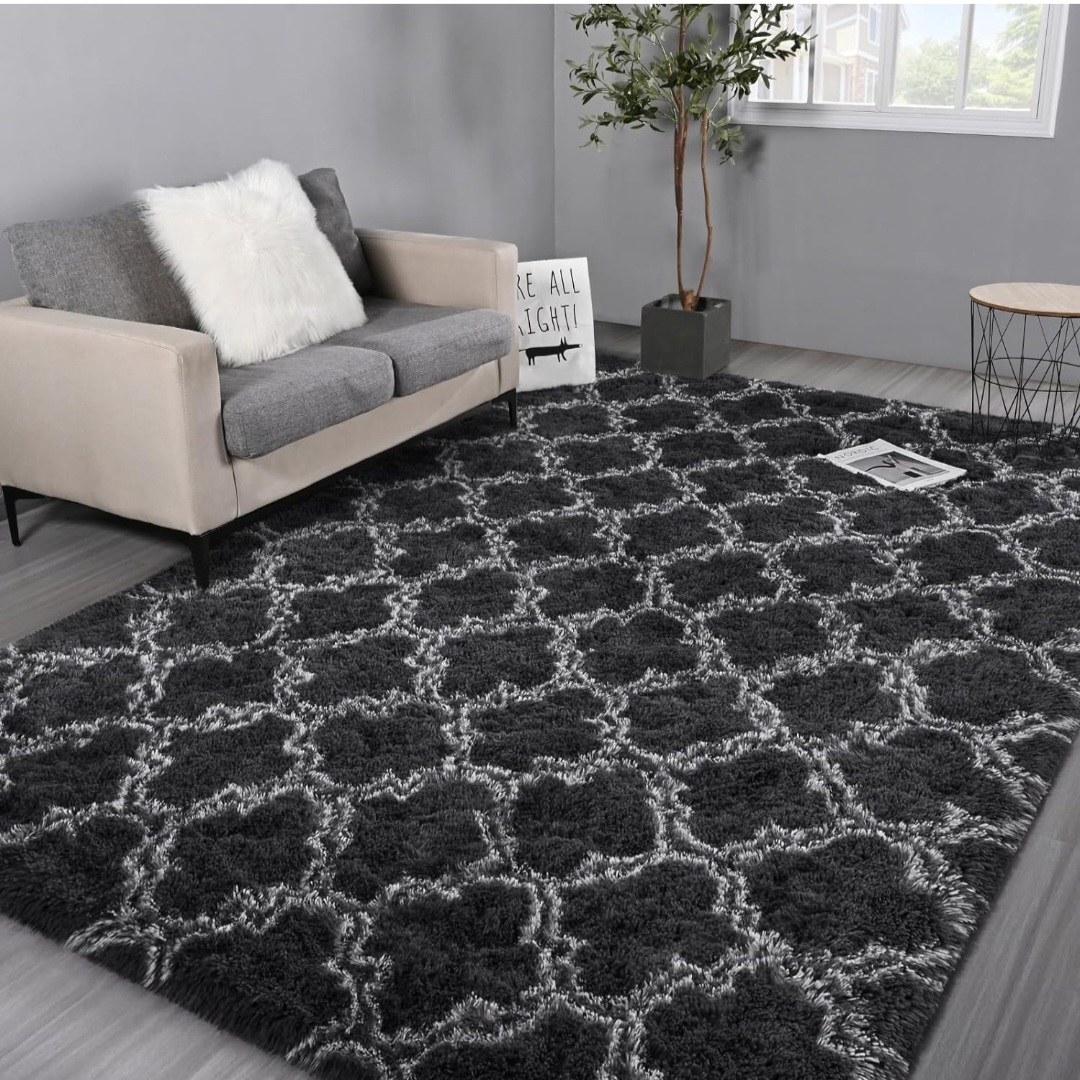 Grey and White Fluffy Area Rug