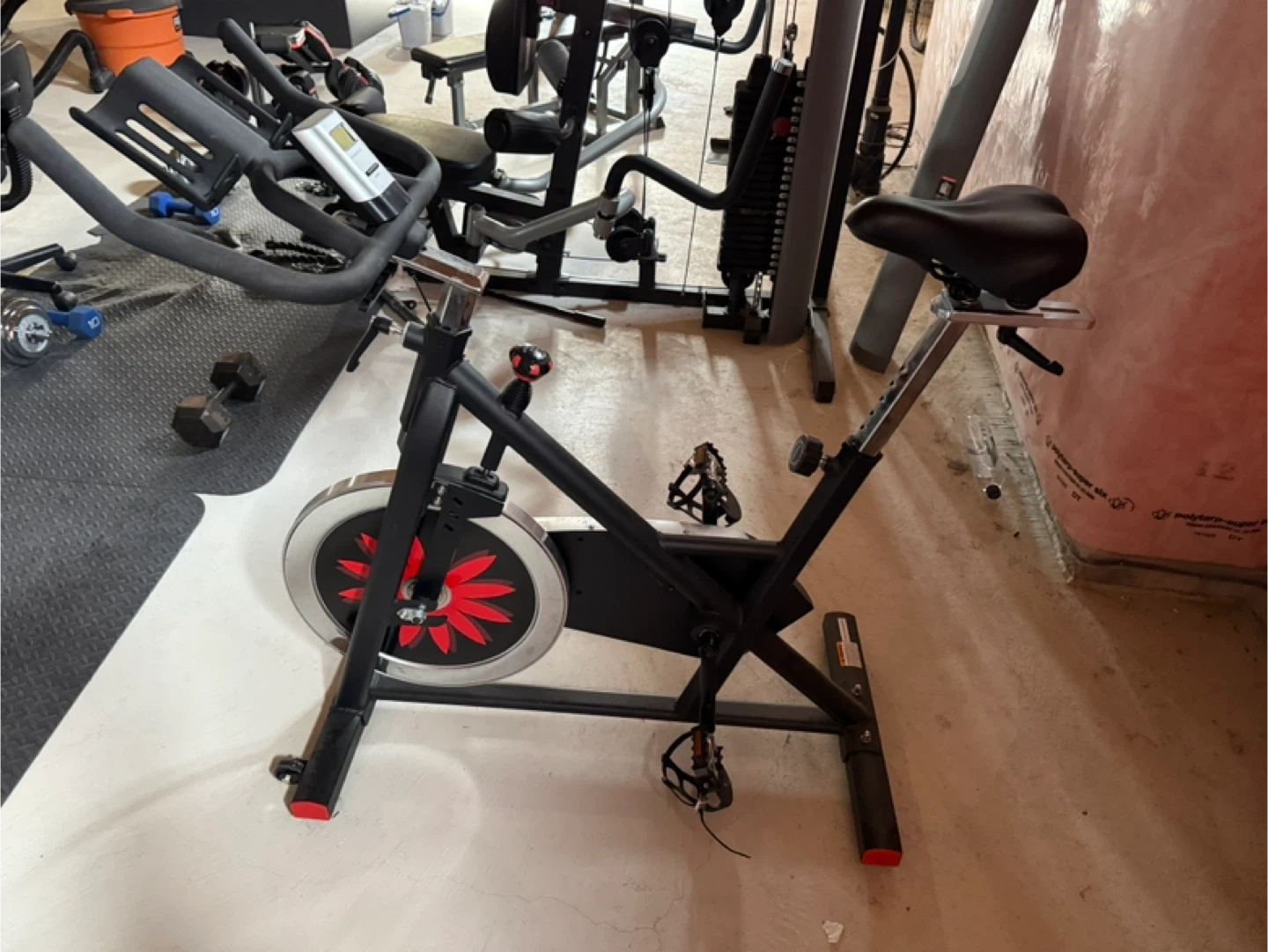 The bike features an adjustable seat and handlebars for comfort. Perfect for home workouts!