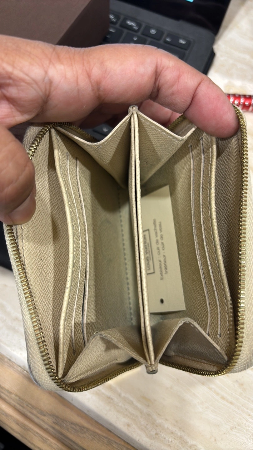 Authentic Louis Vuitton Damier Azur Canvas Zip Coin Purse. Wallet holds cards, bills, and pocket change. Perfect for fitting into your favourite pouch or bag.