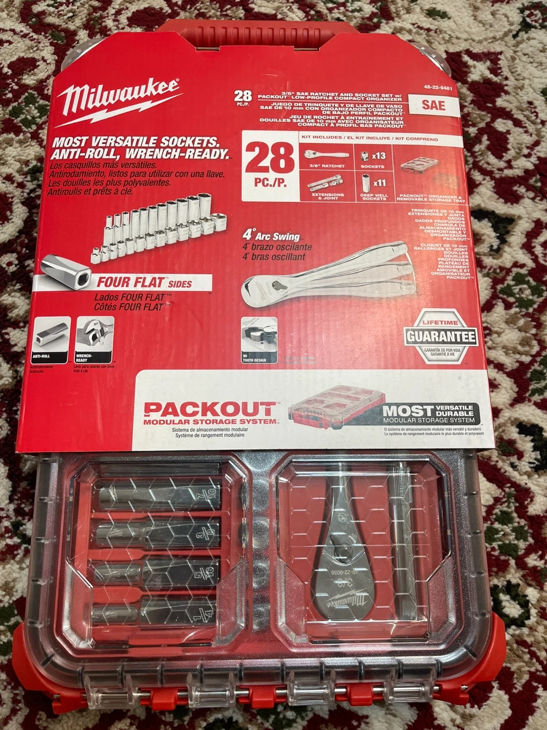 Milwaukee 28-Piece SAE Ratchet and Socket Set with PACKOUT Case