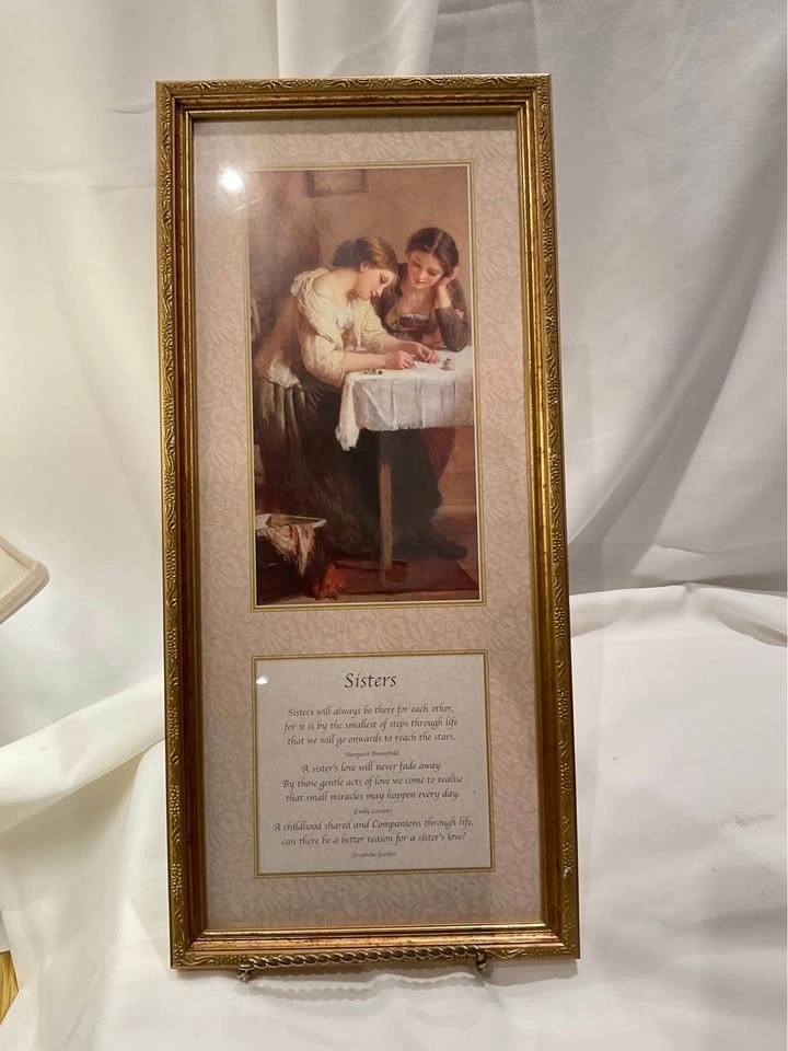 Beautiful print "Sisters" in an ornate frame. Pristine condition. 20" x 9". From a smoke & pet-free home. Located in Richmond Hill (Bathurst & King Rd).