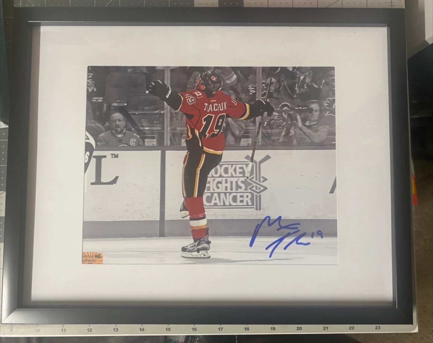 Autographed photo of Matthew Tkachuk, Calgary Flames player. Includes certificate of authenticity from Your Sports Memorabilia Store. Framed.