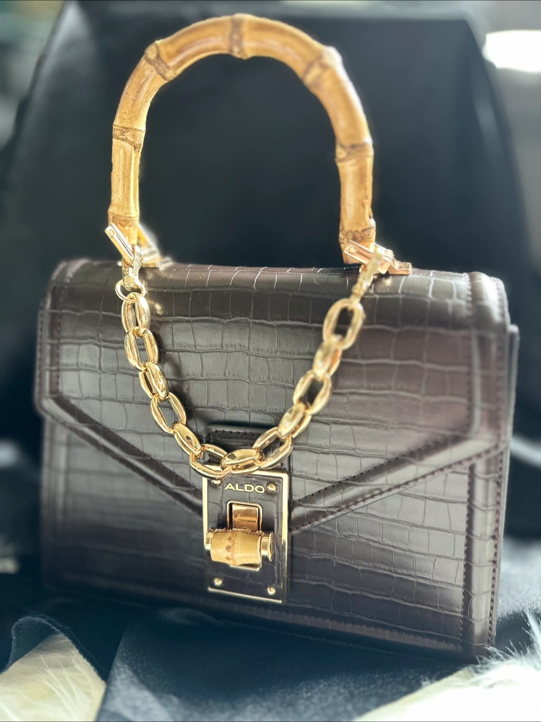 ALDO Dark Brown Croc-Embossed Handbag with Bamboo Handle