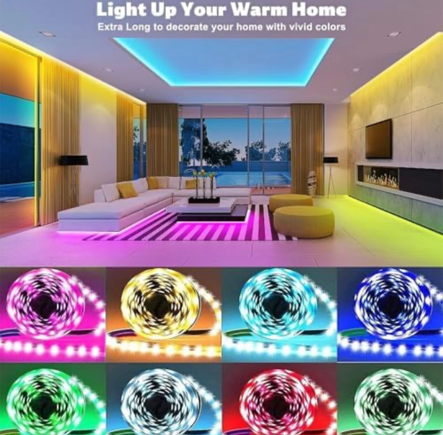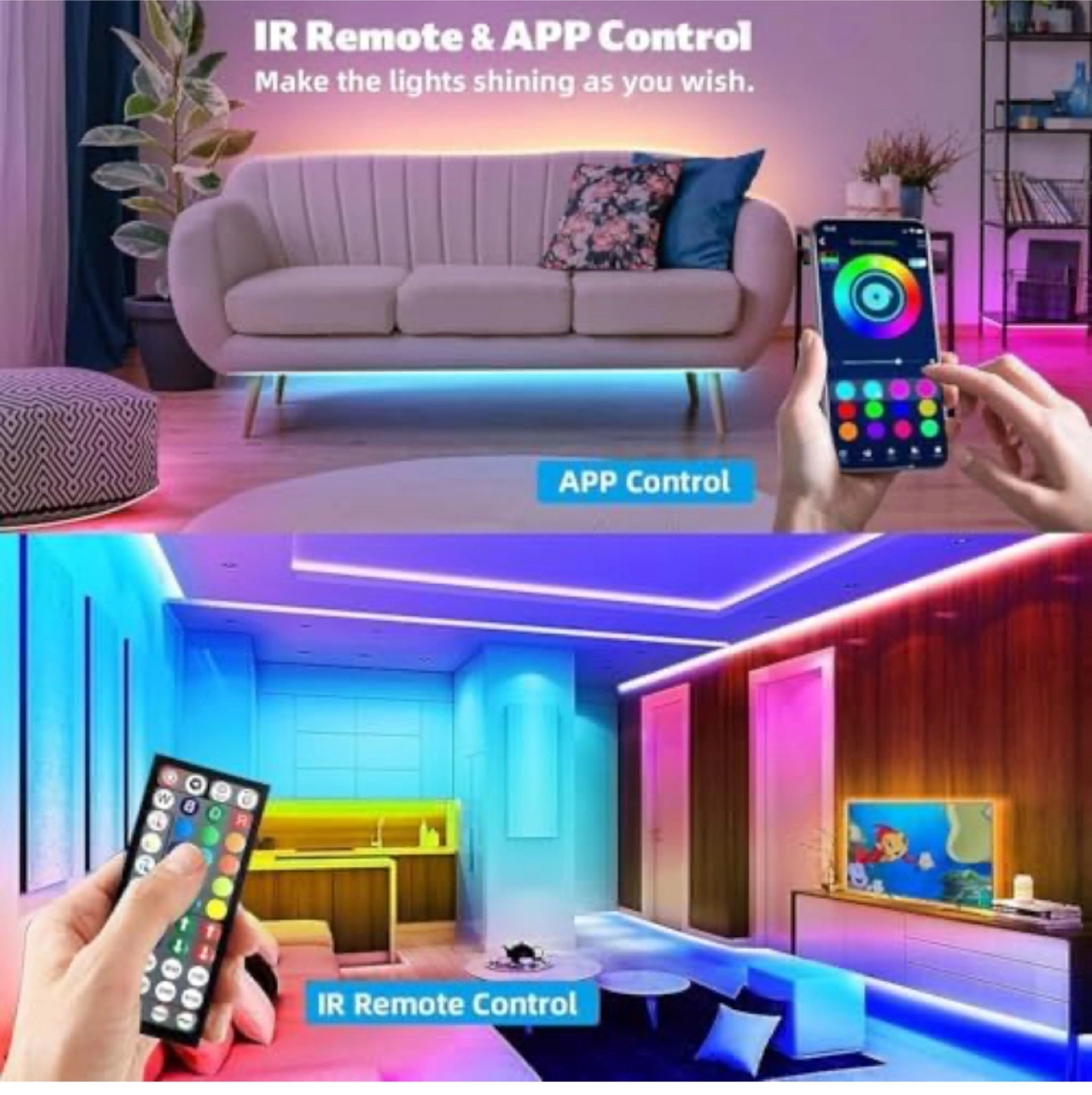 100Ft Smart LED Strip Lights Music Sync, App & Remote Control