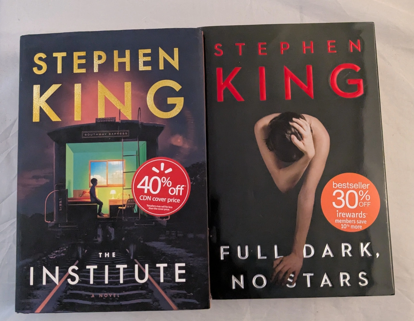 50All books are hardcover except as marked. Selling as lot only. All spines, pages, and dust jackets in good condition. No musty smells. 1. The Stand 2. Skeleton Crew 3. Four Past Midnight 4. Cell 5. Dream Catcher 6. The Institute 7. Full Dark, No Stars 8. Revival 9. From a Buick 8 10. The Dark Half 11. It (massive softcover) 12. Billy Summers Pickup near Upper Middle and Guelph Line (Burlington). If you're coming from Hamilton way or Toronto way I can arrange for a Burlington Tims off the QEW that's maybe more convenient. Note: I don't get to Toronto much. Happy to ship but it goes Canada Post and you can't mail an empty box across the GTA for less than $17. So cross check your shipping cost expectations before asking, thank you!