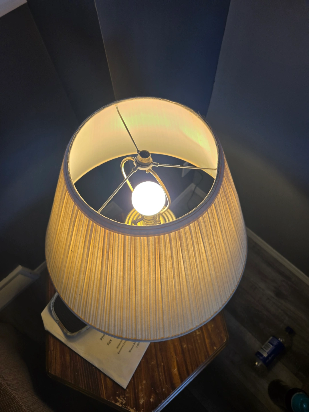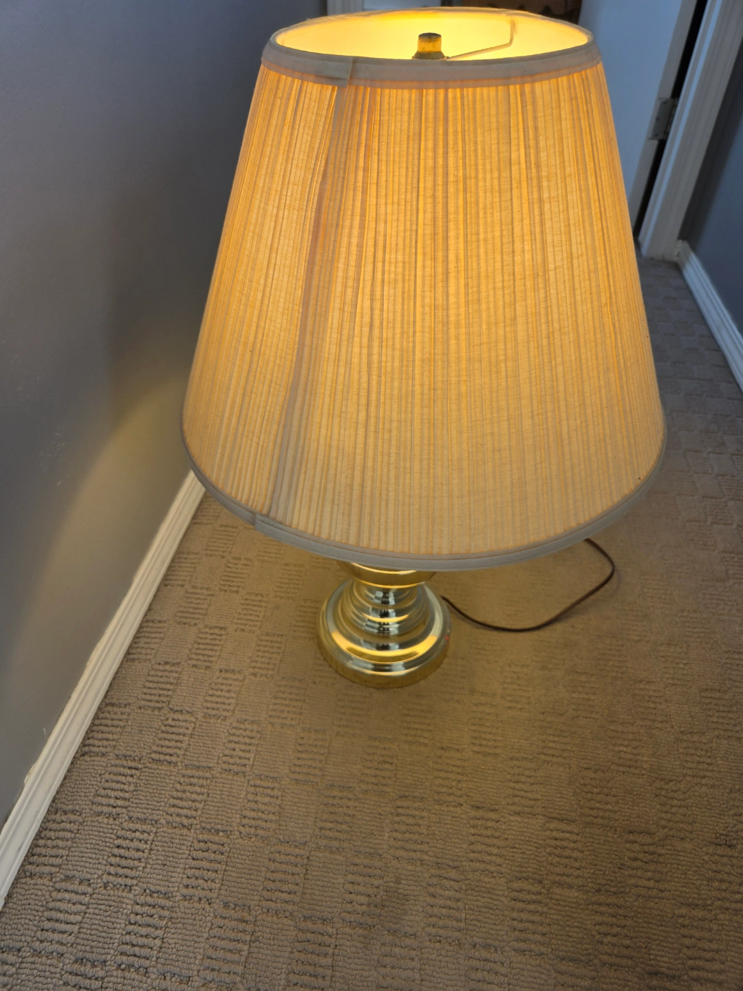 Vintage brass table lamp. Features a pleated lampshade. Good condition, minor wear. 20 each or both for 30