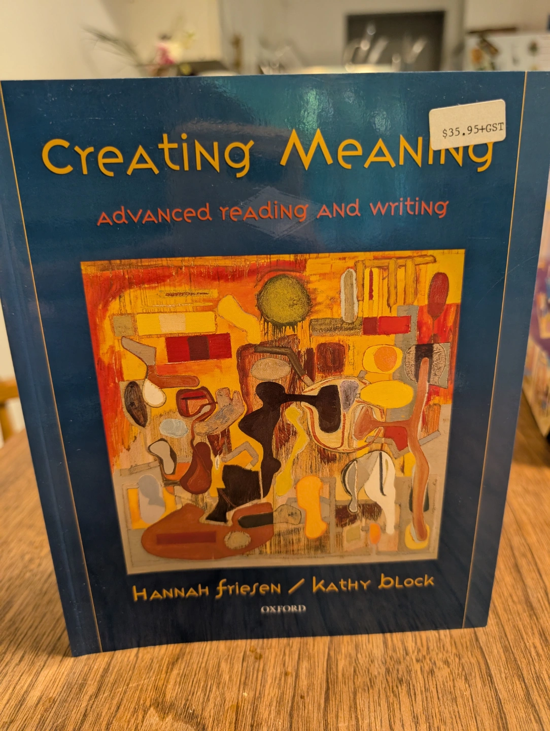 Buy & SellCreating Meaning: Advanced Reading and Writing TextbookCreating Meaning: Advanced Reading and Writing Textbook$5New textbook. Advanced reading and writing skills. Includes grammar exercises and answer key. Canadian authors. Oxford University Press.ConditionNewWHERE TO MEETThurston stView MapSELLERverifiedChristiMetrotown1023 reviews0 chats·0 favorites·5 views