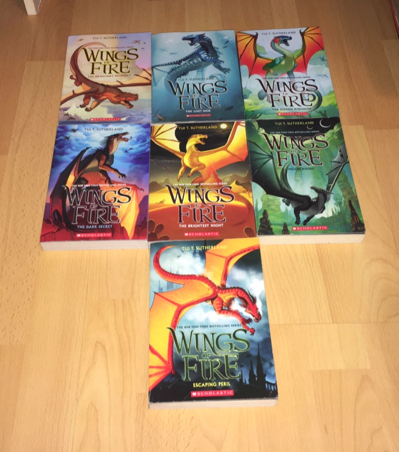 We are selling 7 Tui T. Sutherland's Wings of Fire books.