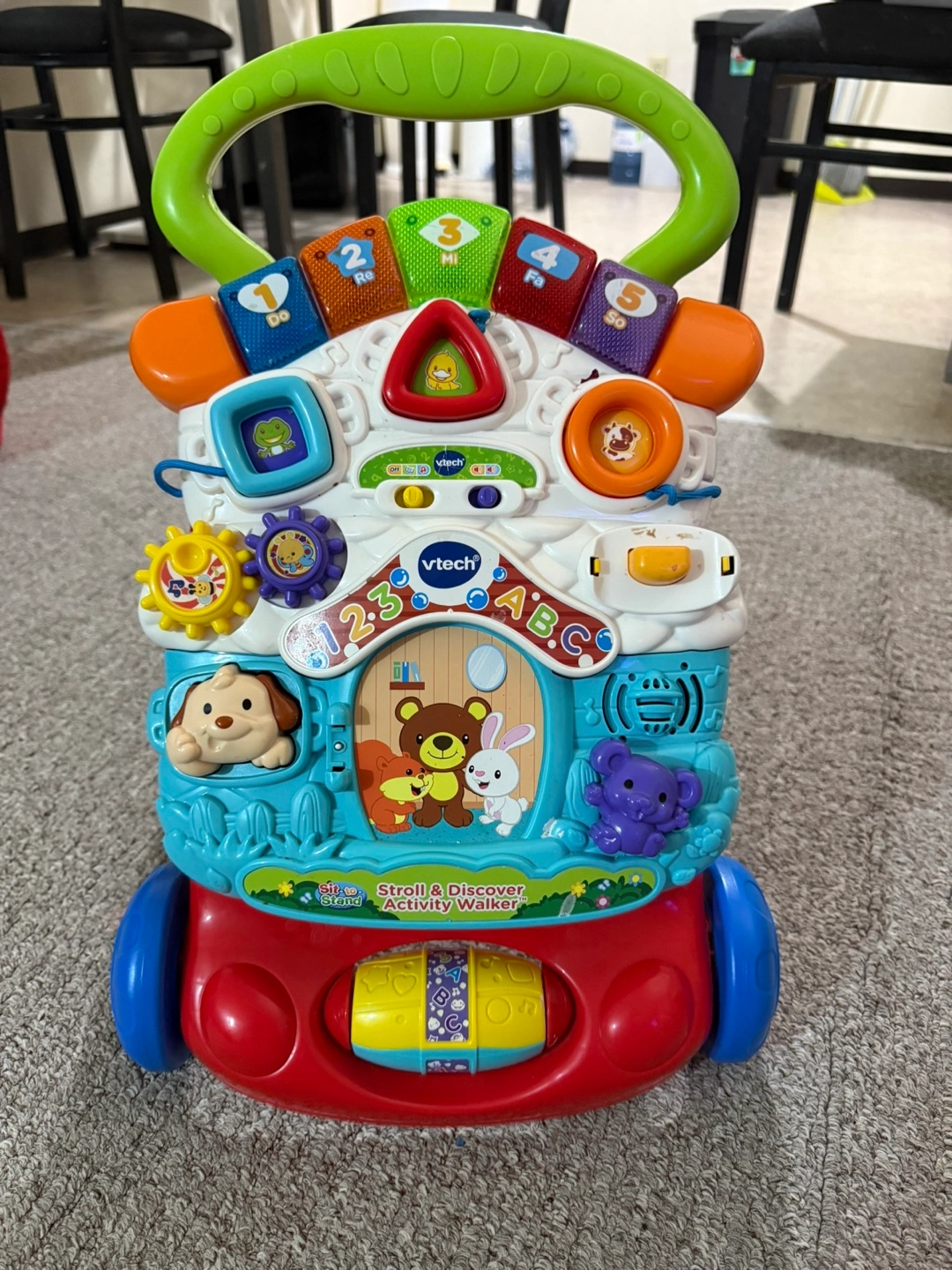 Fun activity walker. Features lights, sounds, and interactive activities. Great for helping little ones learn and develop motor skills. Suitable for babies and toddlers.