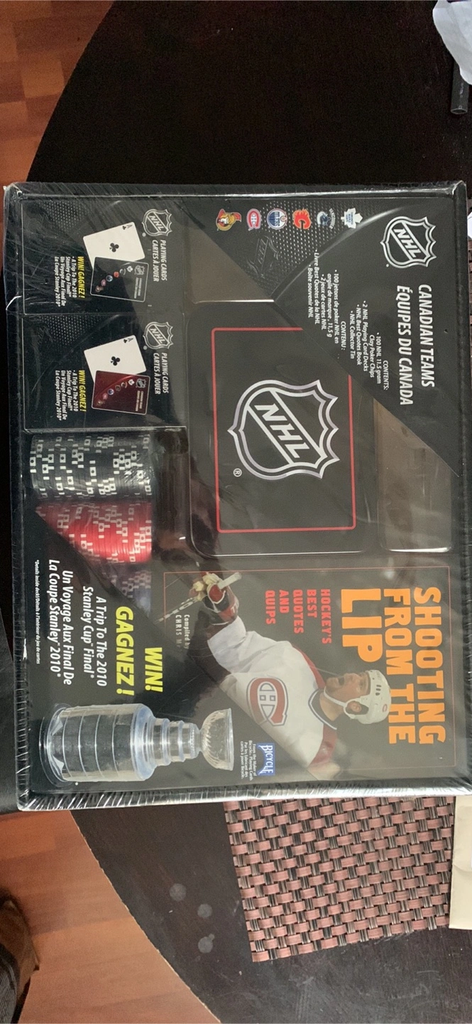 Buy & SellNHL Shooting From the Lip Poker Set - New in BoxNHL Shooting From the Lip Poker Set - New in Box$10New NHL branded poker set. Includes playing cards, poker chips, and a collector NHL tin along with a NHL book.ConditionNewWHERE TO MEETTreverton ParkView MapSELLERverifiedDeniseIonview892 reviews0 chats·0 favorites·4 views