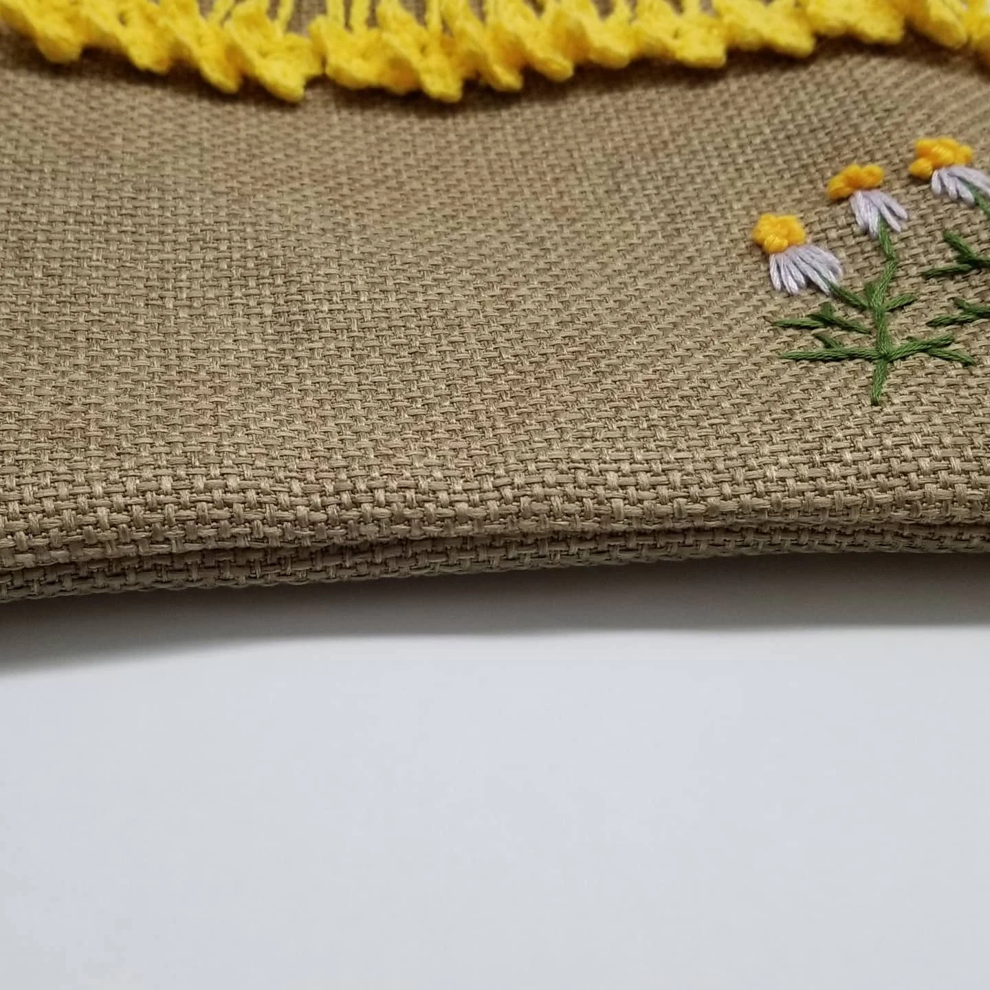 hand bag made with crochet border and thick fabric outside, cotton fabric inside. Also decorated with embroidery design which gives it a nice look. It has enough space for all what they might need.