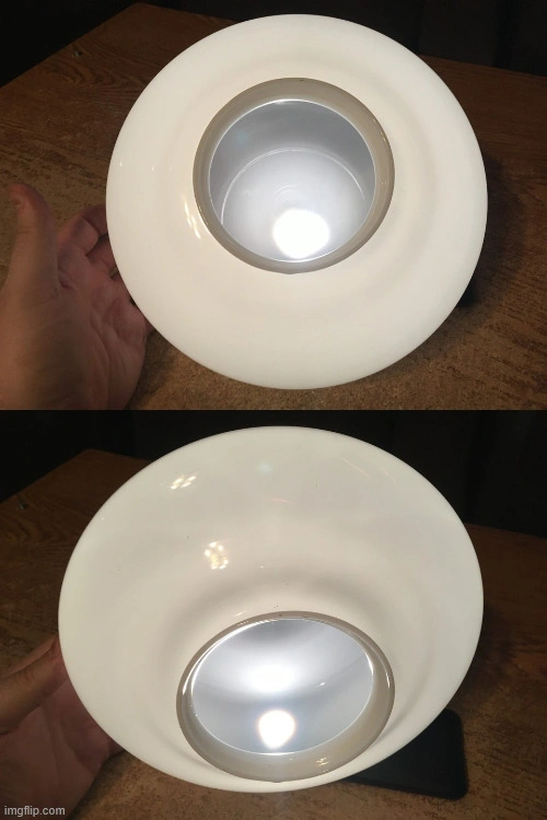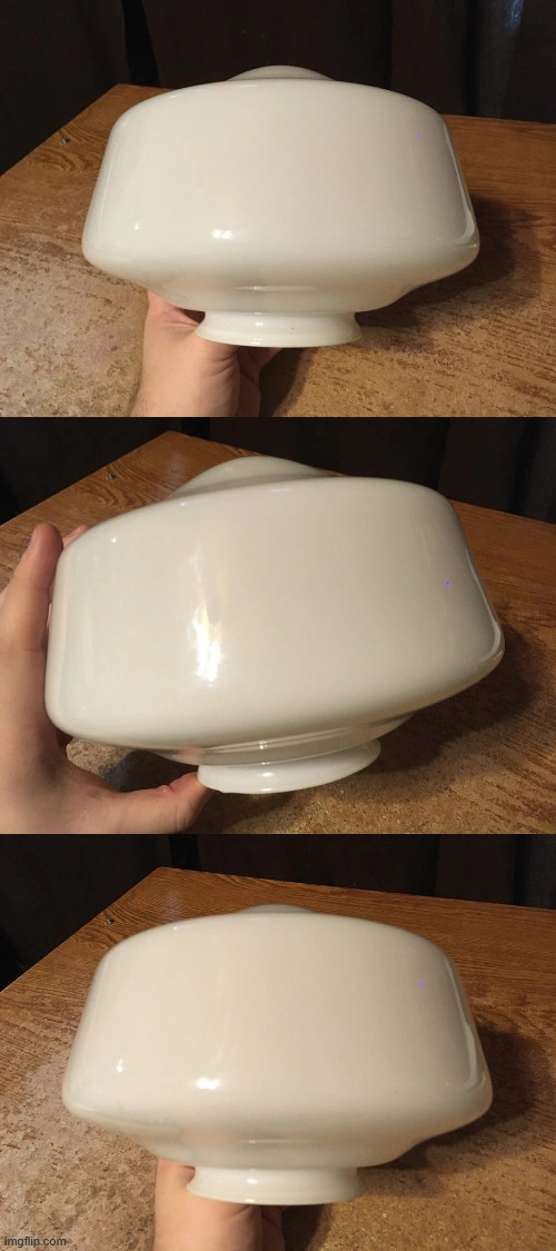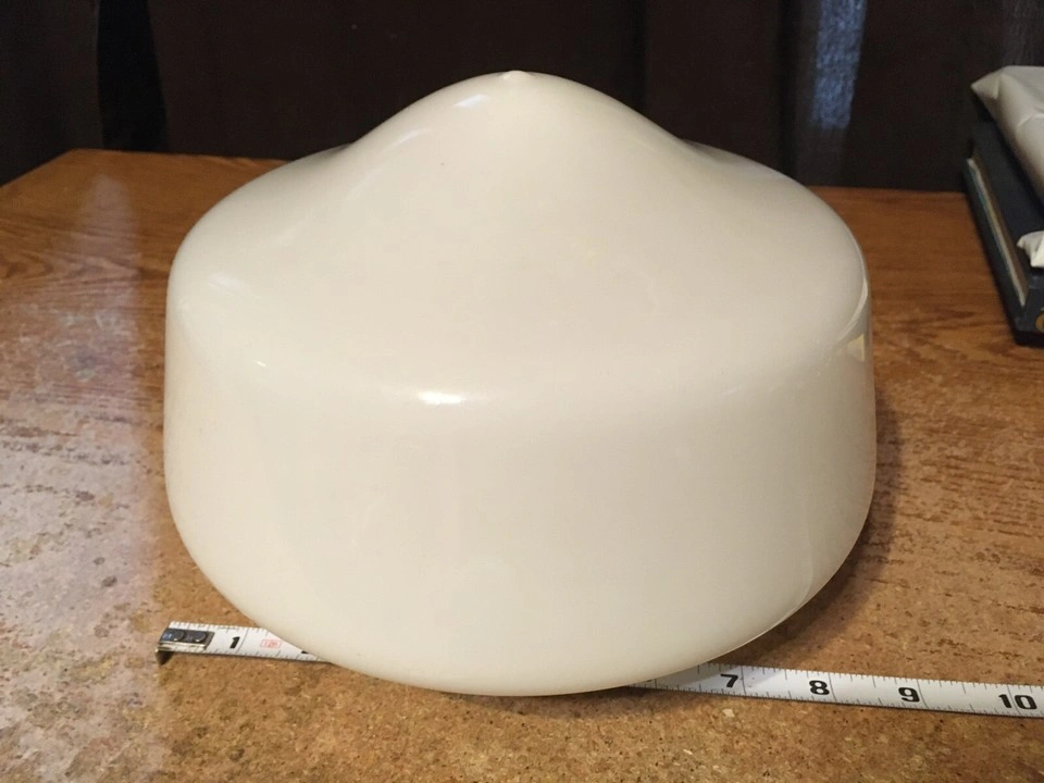 Unique vintage light fixture. White milk glass globe. Perfect for retro or mid-century modern decor. Shows minor wear consistent with age. it's about 9 in across and 6 in tall pick up at house