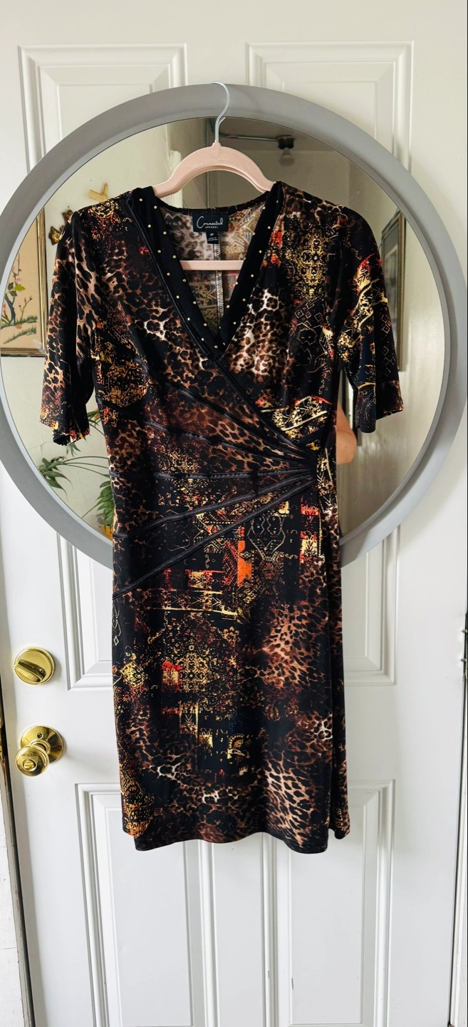 Beautiful short sleeve dress. Size 8. Leopard print and gold accents.