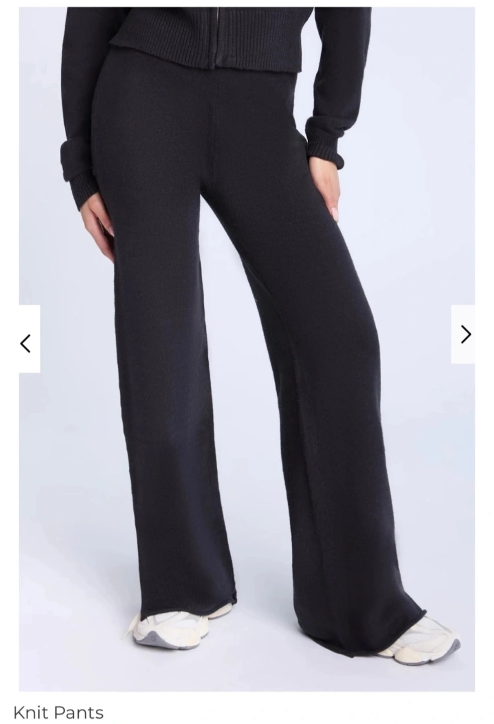 High rise soft knit pants with side slits and ribbed waistband. Stretchy, so will fit if you’re typically a medium as well. Super comfy and flattering. Approx. Inseam: 30", Rise: 12.5".