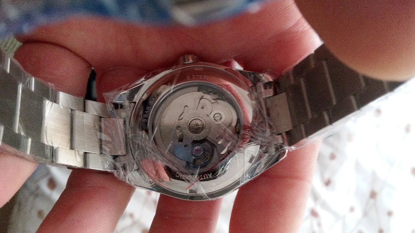 Men's wristwatch, stainless steel band, blue face. Automatic movement. New, in box. See images for details.