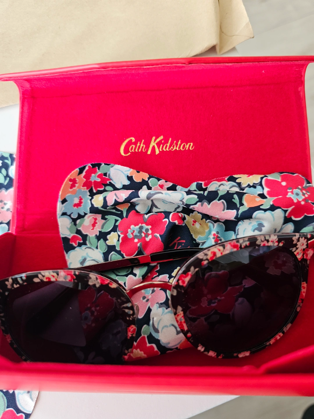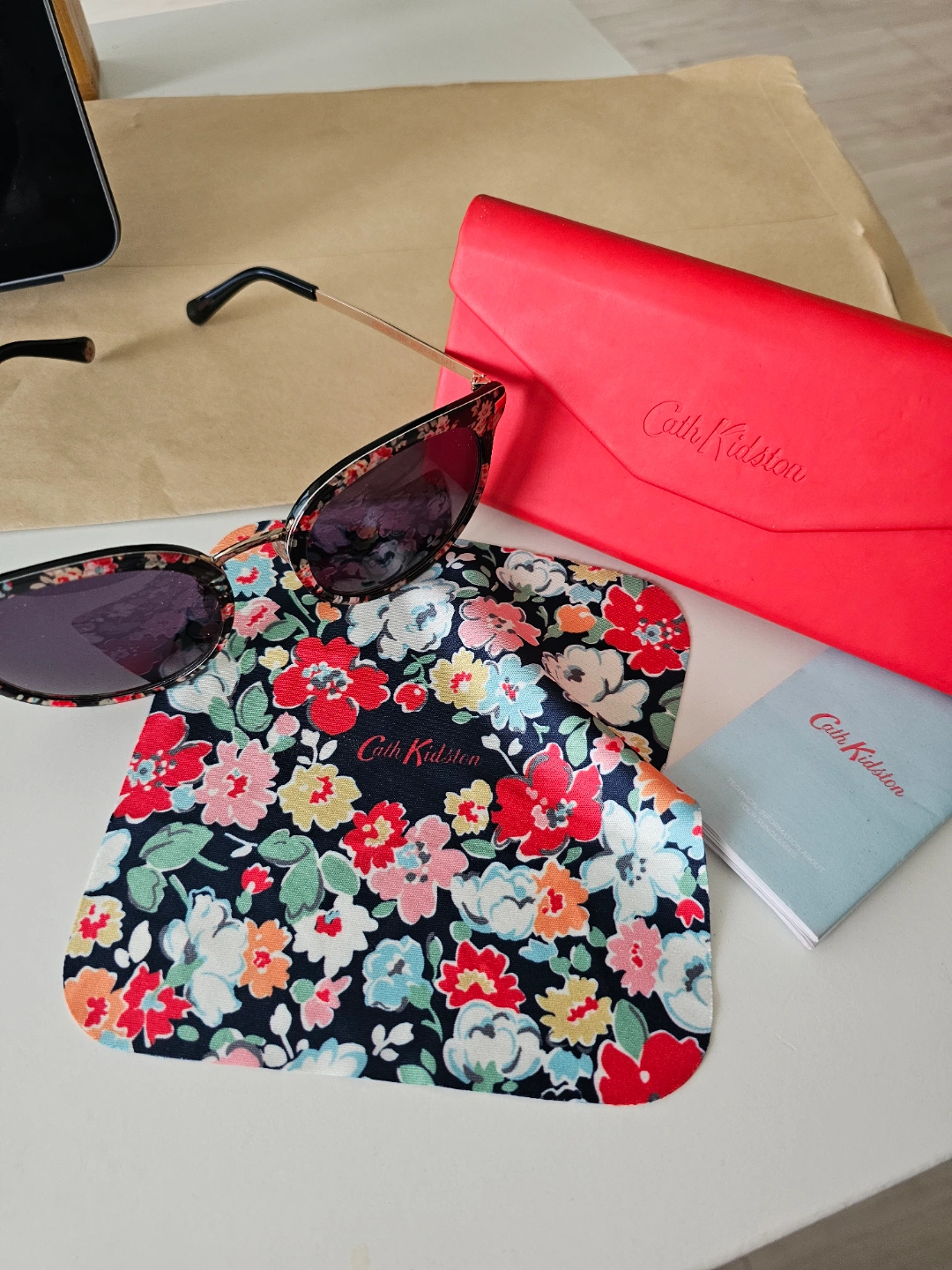 1000+Women's sunglasses. Floral print frames. Rose gold arms. Includes hard case and cleaning cloth. case is foldable to flat for carry easy. Excellent condition.