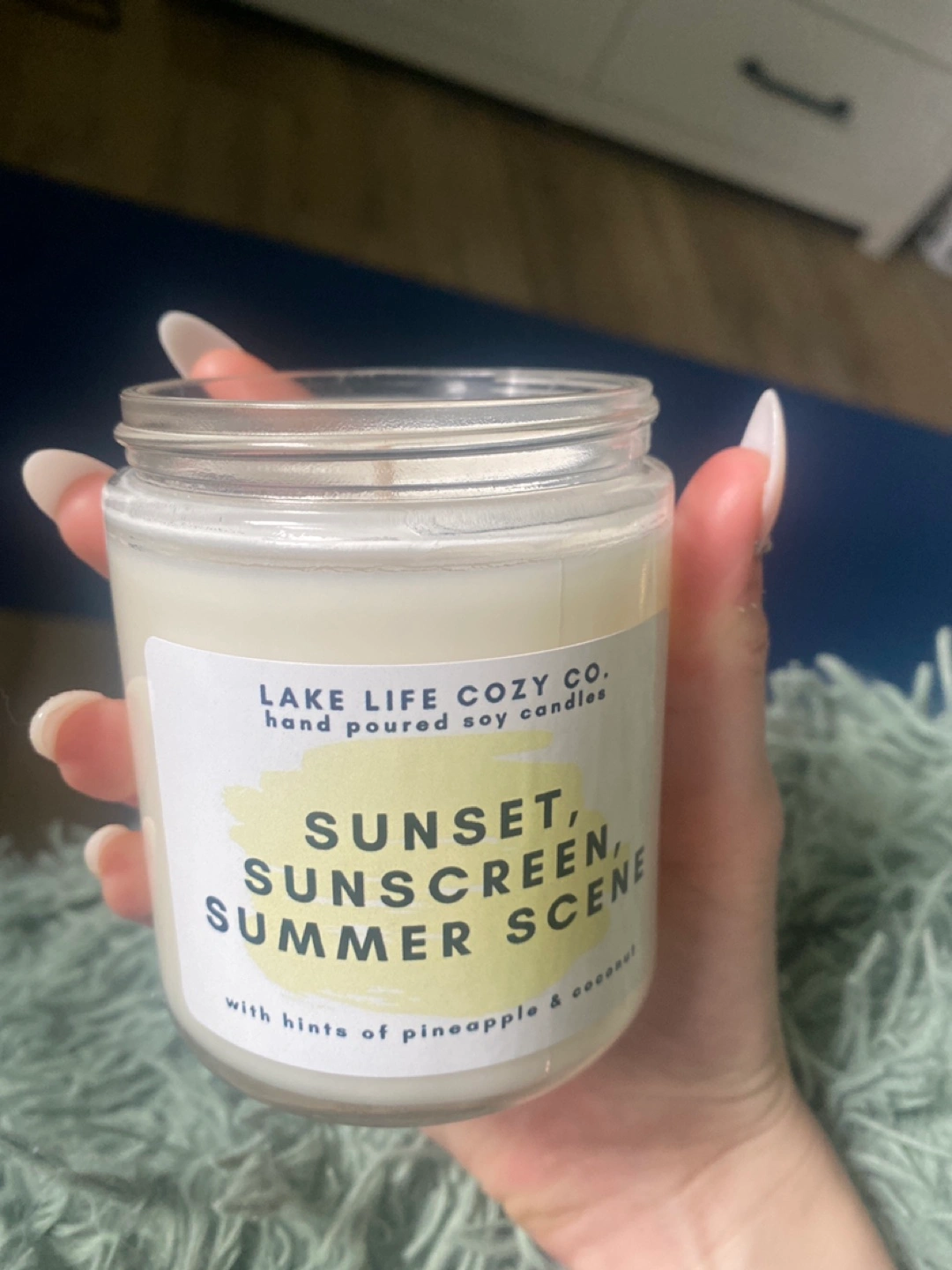 34Hand-poured soy candle. Sunset, Sunscreen, Summer Scene scent. Pineapple and coconut hints.
