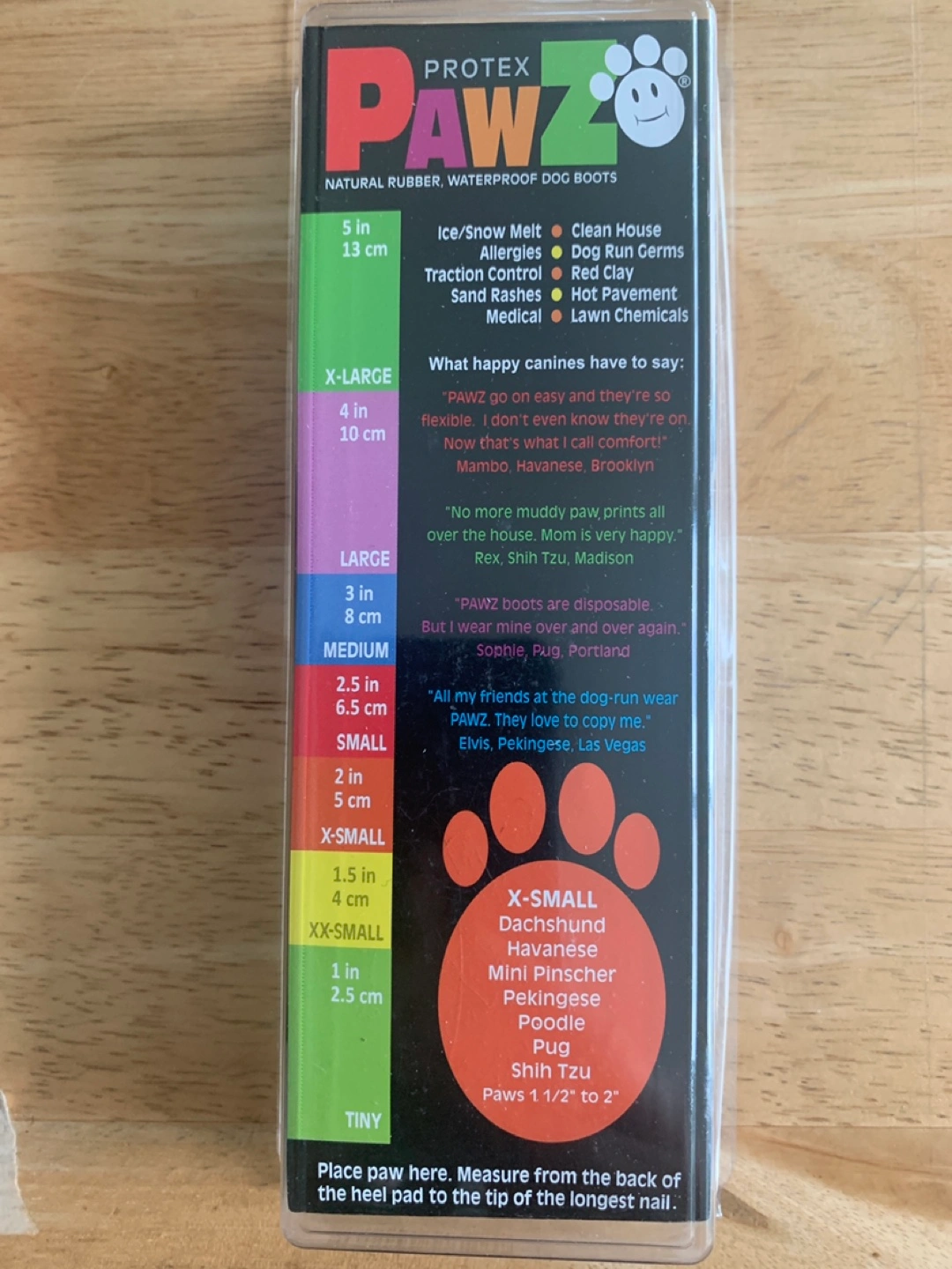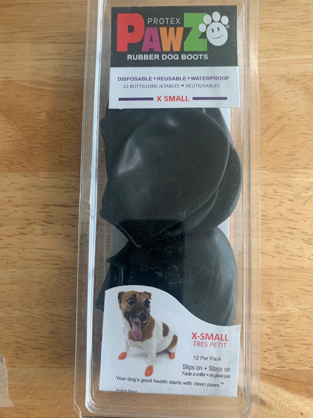 12 pack of black disposable/reusable waterproof dog boots. X-Small size. Perfect for small breeds.