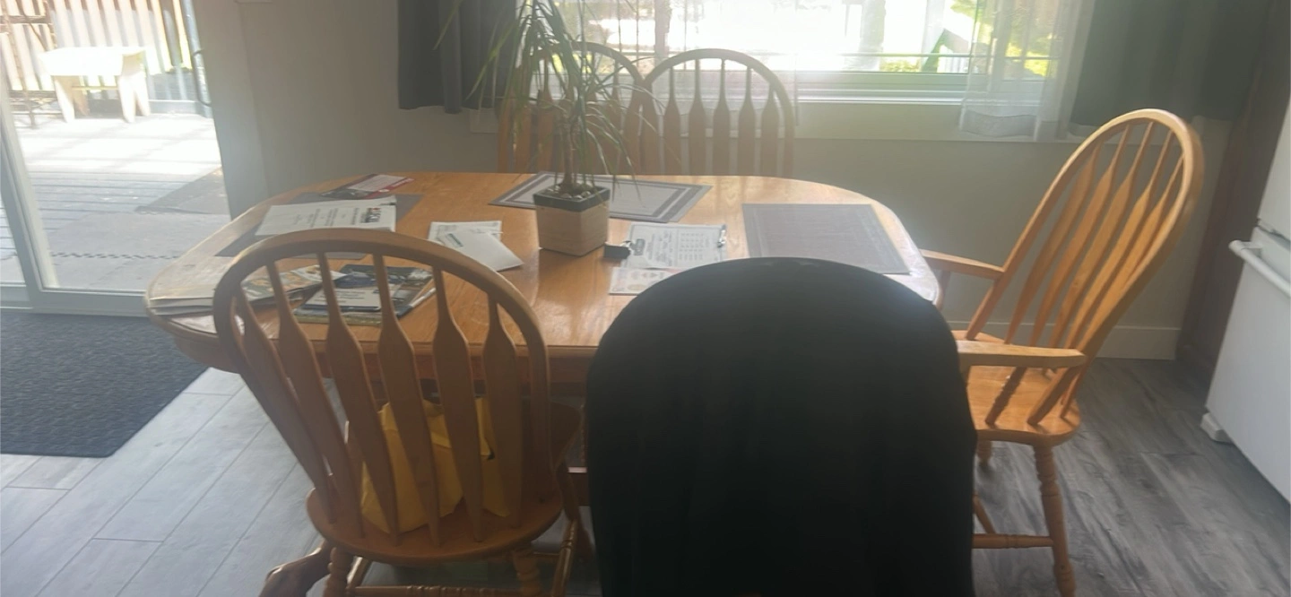 Buy & SellSolid Wood Dining Table SetSolid Wood Dining Table Set$130Four-chair dining set. Solid wood construction. Table features pedestal base. Chairs have spindle backs. Good condition.WHERE TO MEETCheck LocationView MapSELLERCarlosTilbury East50 reviews0 chats·0 favorites·15 viewsSEND CHAT TO SELLERHi Carlos! I’m interested in your listing.Hi Carlos! I’m interested in your listing.Get the Karrot app to chatSign In to chat