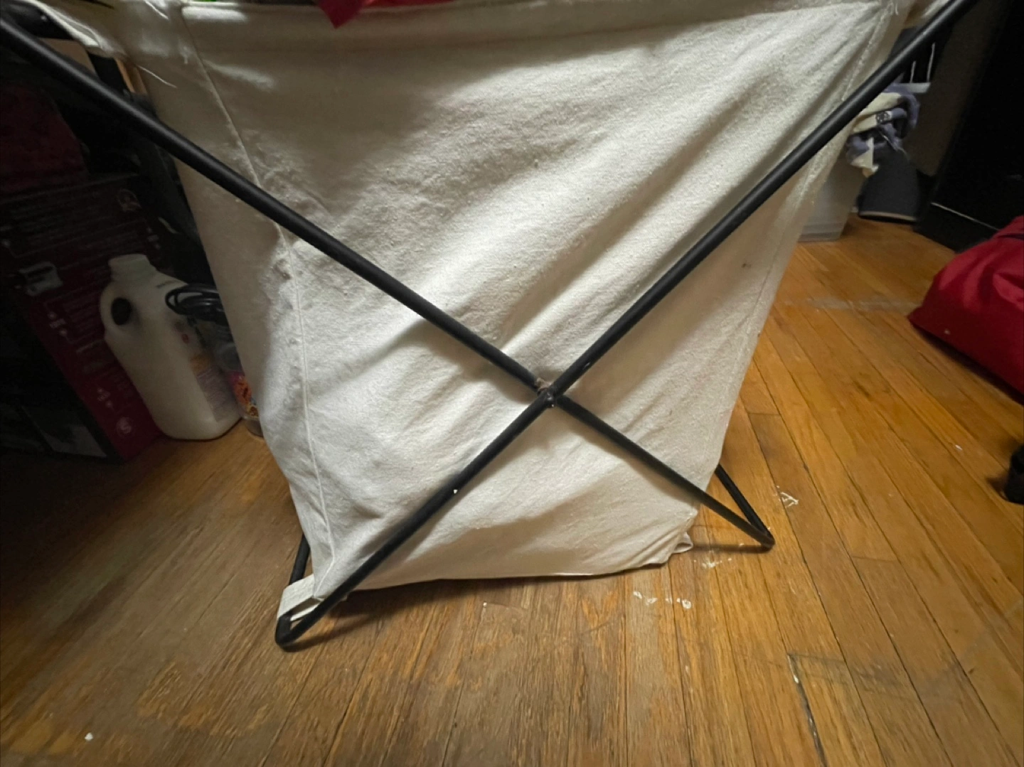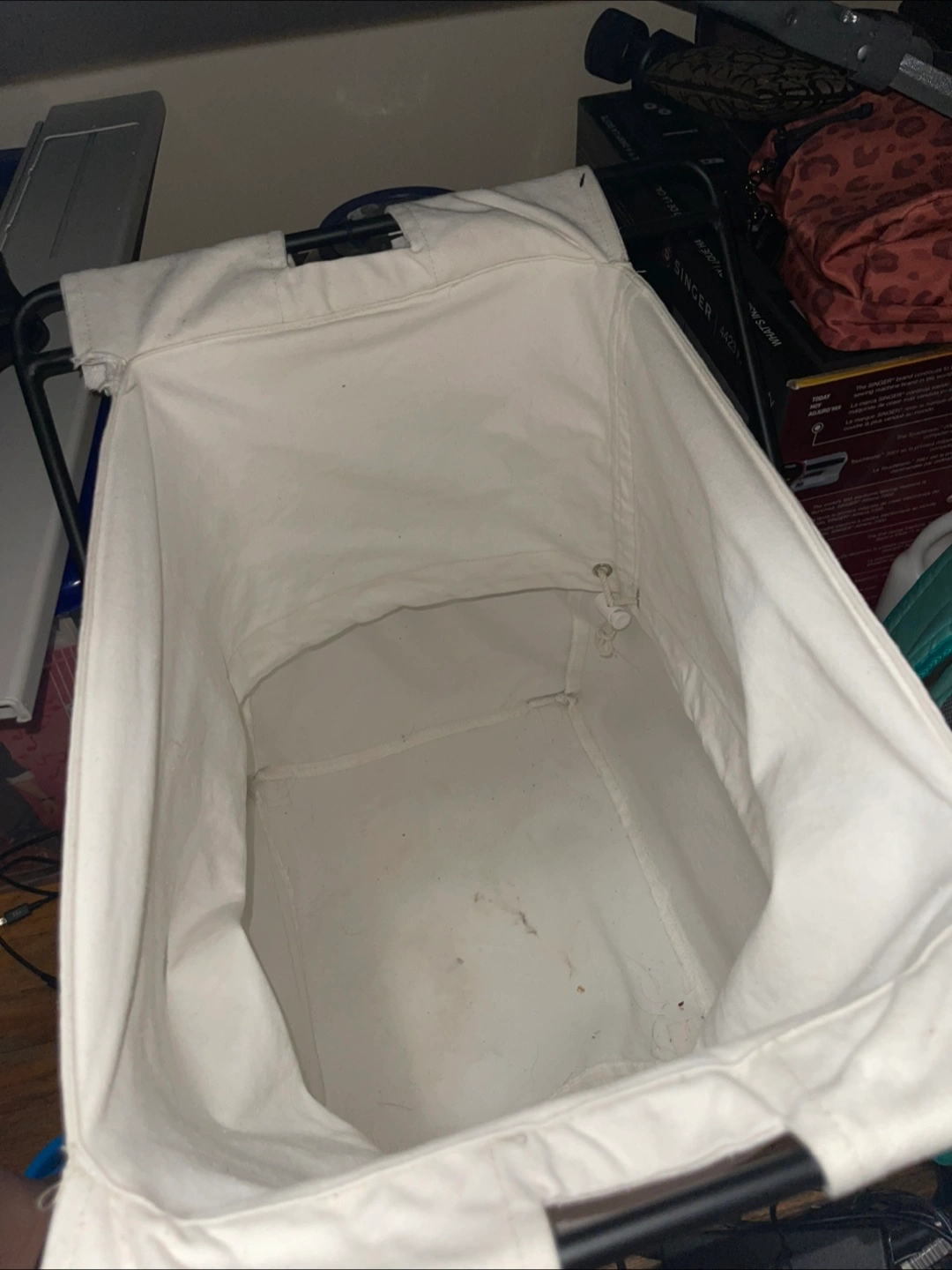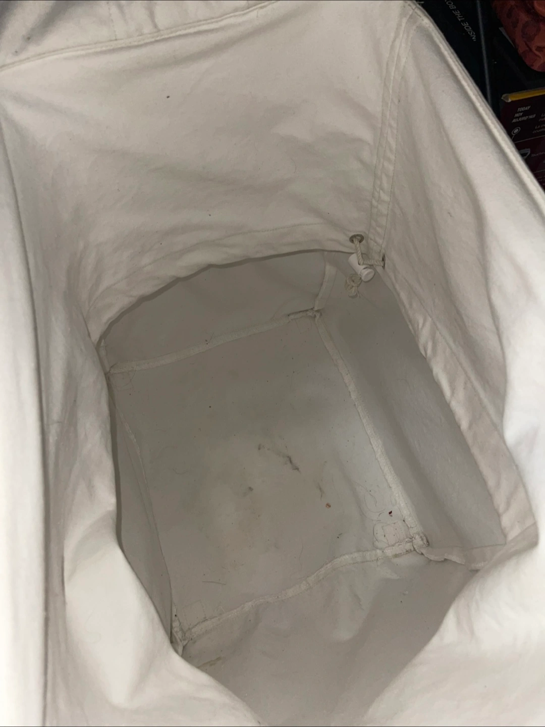 667Foldable laundry hamper (black metal frame). White fabric bag (can be replaced with a new bag, as the one in the photo shows wear/stains and a tear) Pick up Dundas and Kensington.