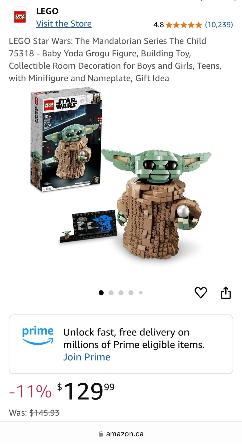 LEGO Star Wars: The Mandalorian Series. The Child (75318) - Baby Yoda. New ! Sealed Box (Distressed). $70 firm. Reg. Price $146 +HST