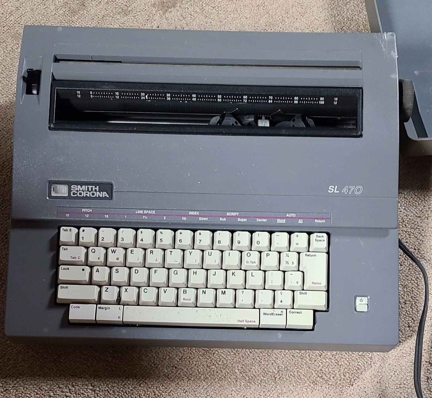Buy & SellVintage Smith Corona SL 470 Electric TypewriterVintage Smith Corona SL 470 Electric Typewriter$100Vintage electric typewriter. Grey body, white keys. Includes power cord. Shows some signs of wear.BrandSmith CoronaWHERE TO MEETCheck LocationView MapSELLERkimOakes333 reviews0 chats·1 favorites·12 viewsSEND CHAT TO SELLERHi kim! I’m interested in your listing.Hi kim! I’m interested in your listing.Get the Karrot app to chatSign In to chat