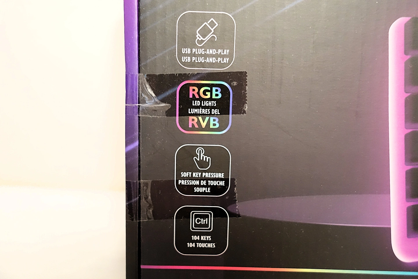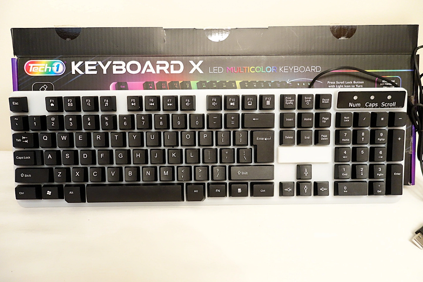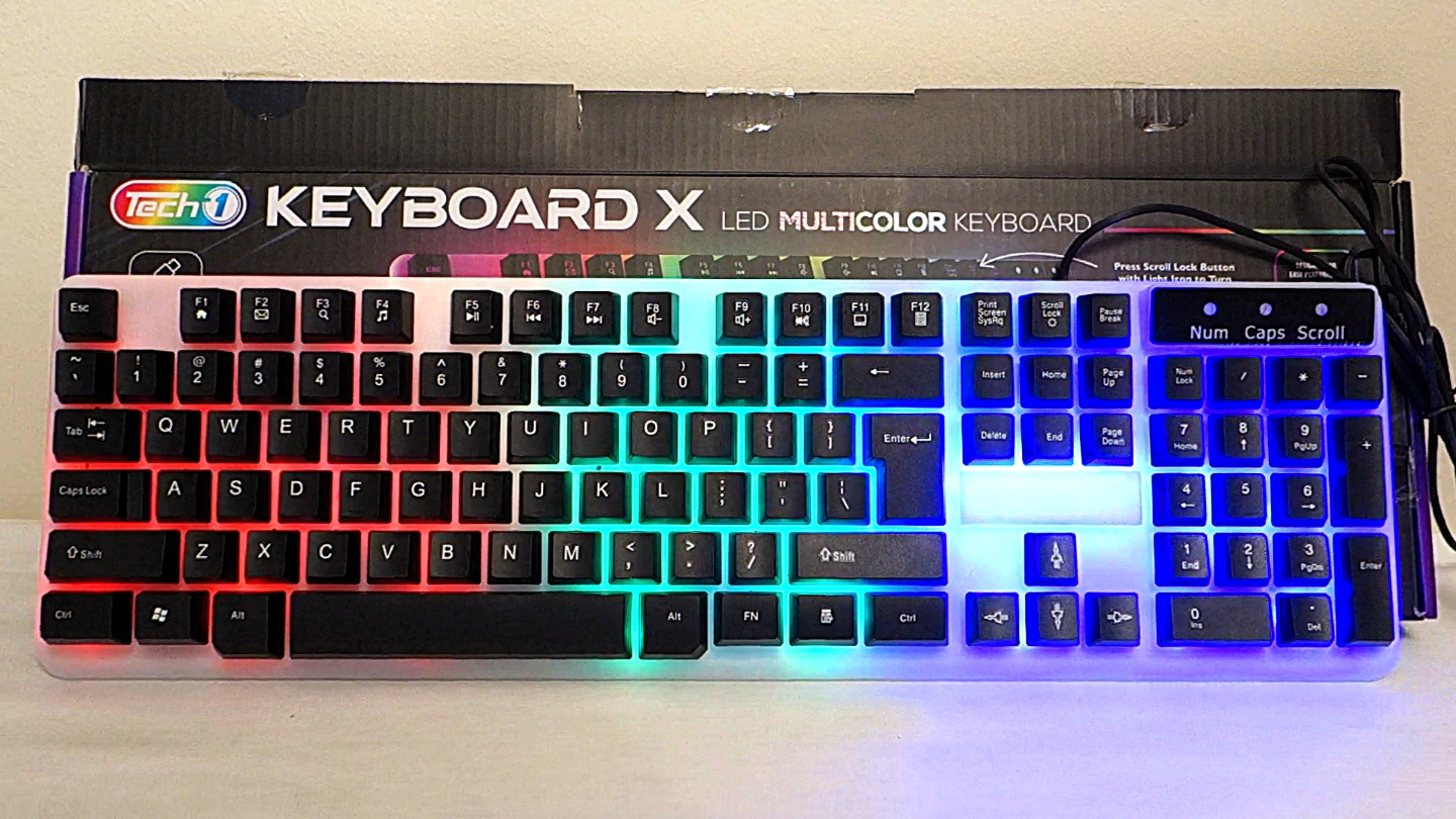 Selling a brand new Tech1 translucent RGB wired keyboard that is a perfect starter keyboard for anyone that is interested in gaming or having a gaming-style setup for their computer. The RGB lighting system can be turned on and off at the press of a switch.