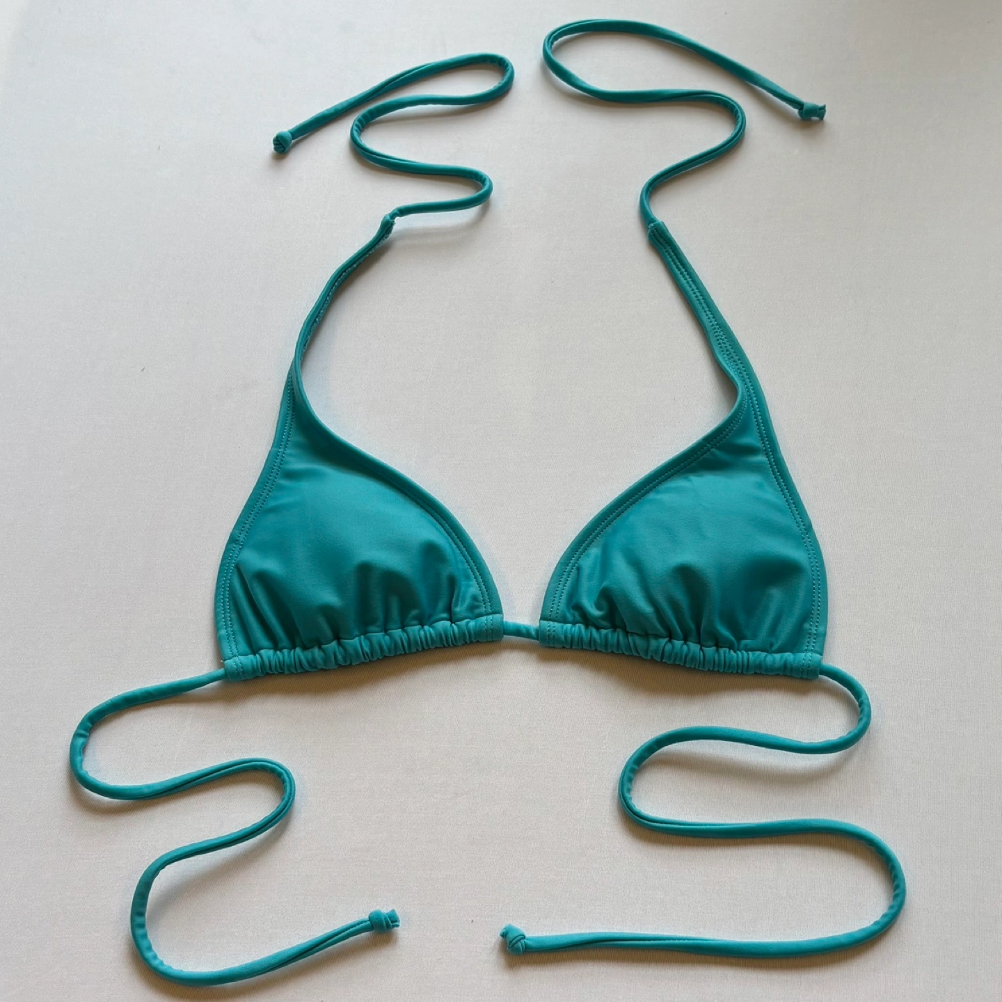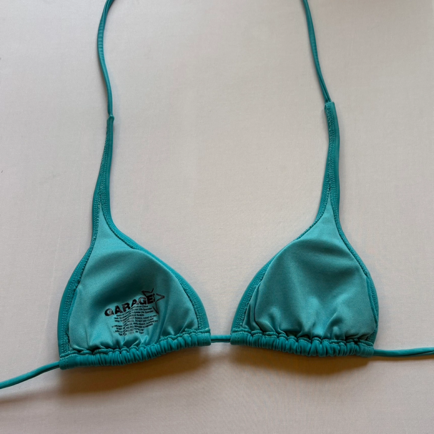This is a stylish Garage teal blue sliding triangle bikini top in a women's size XS. It's ready for your next beach day or poolside adventure!