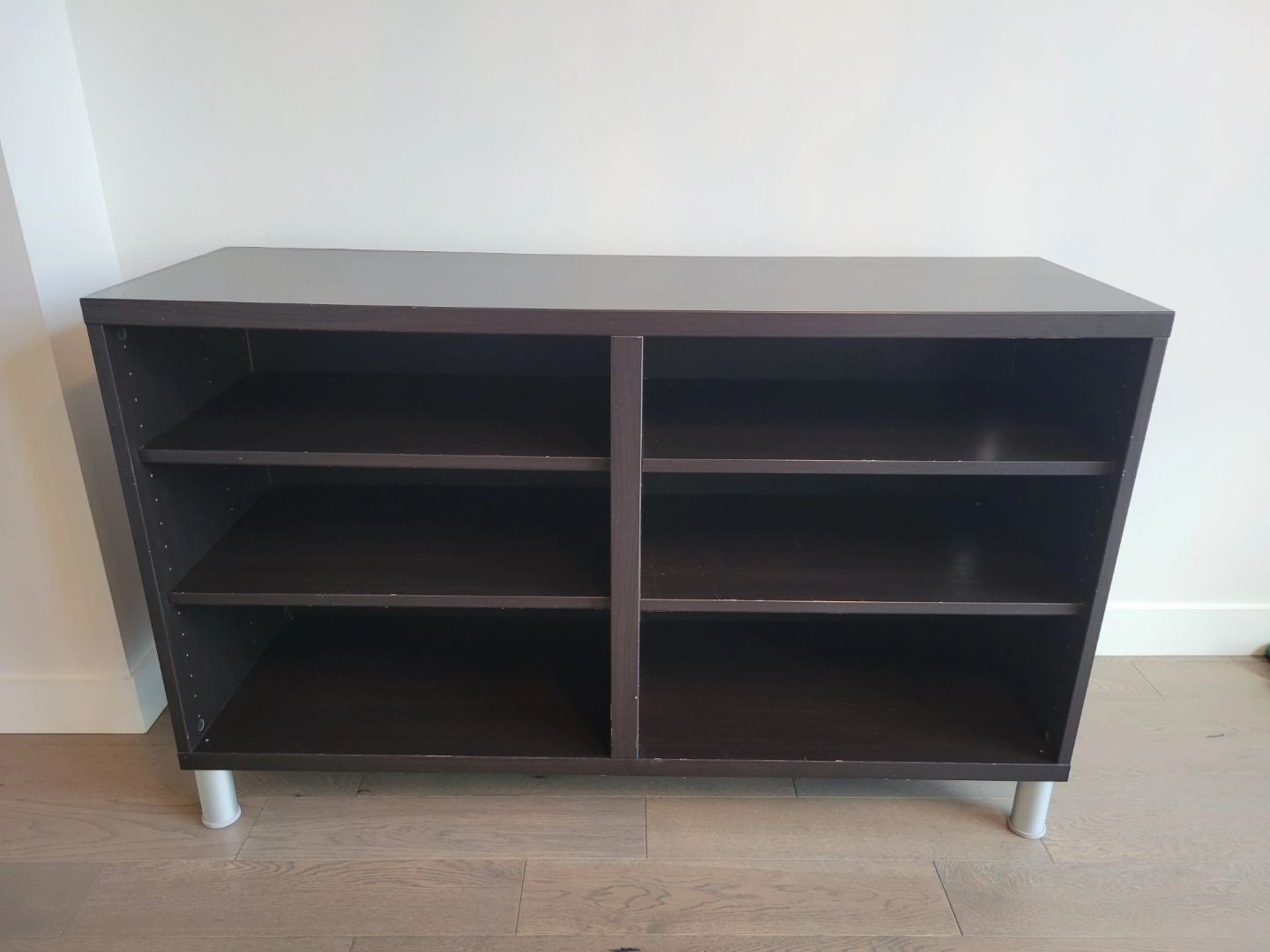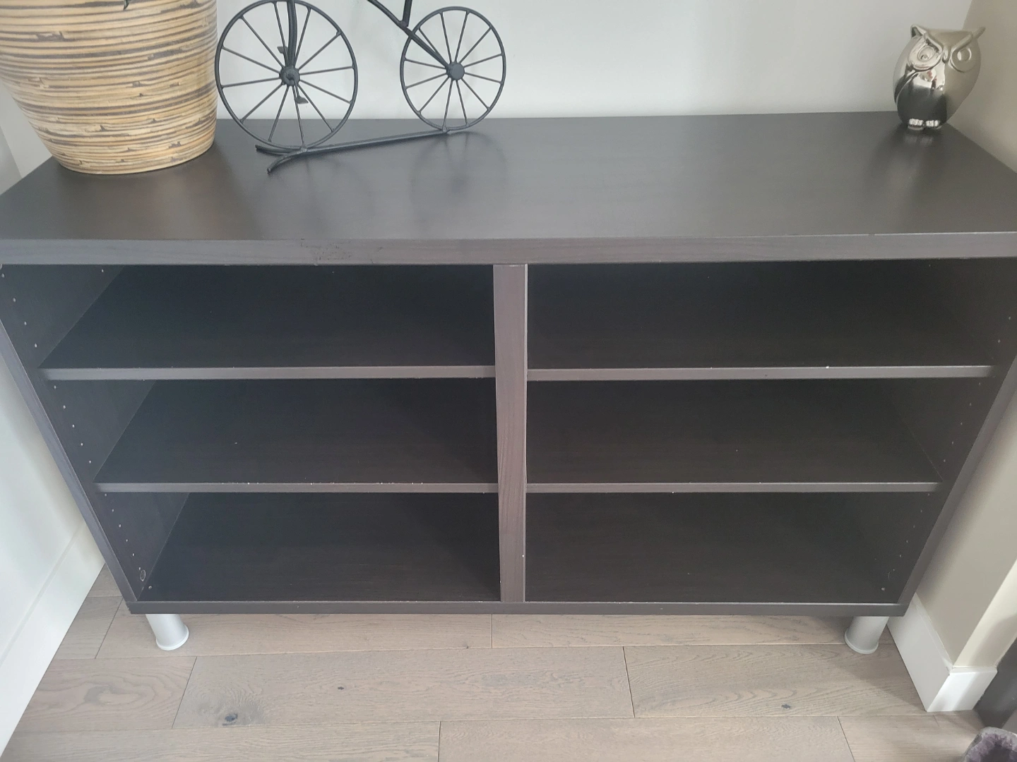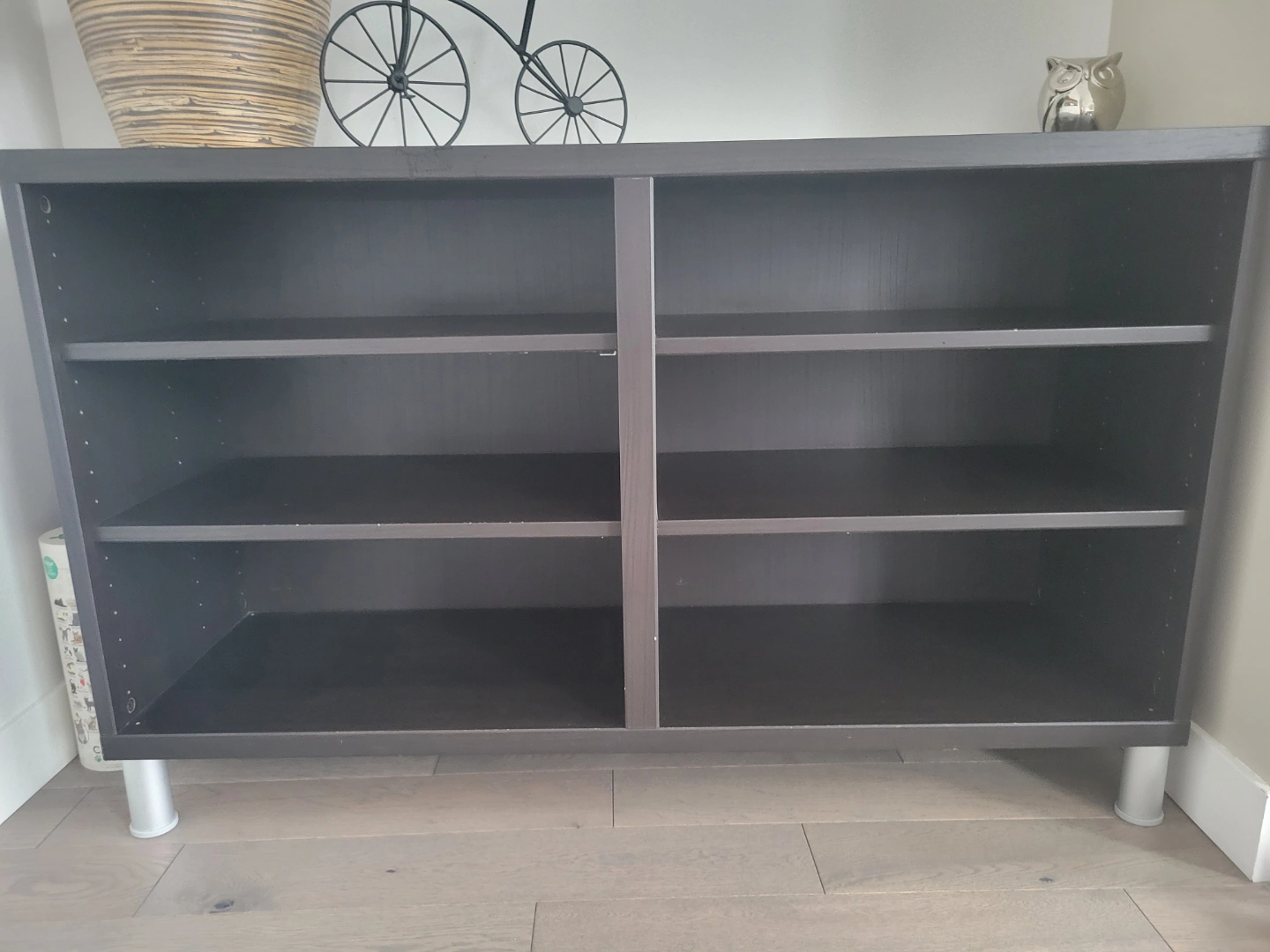 Comes with doors. Ikea sells different door sets as well that can be assembled with cabinet as well as hardware for the doors. 47 x 15.5 x 29
