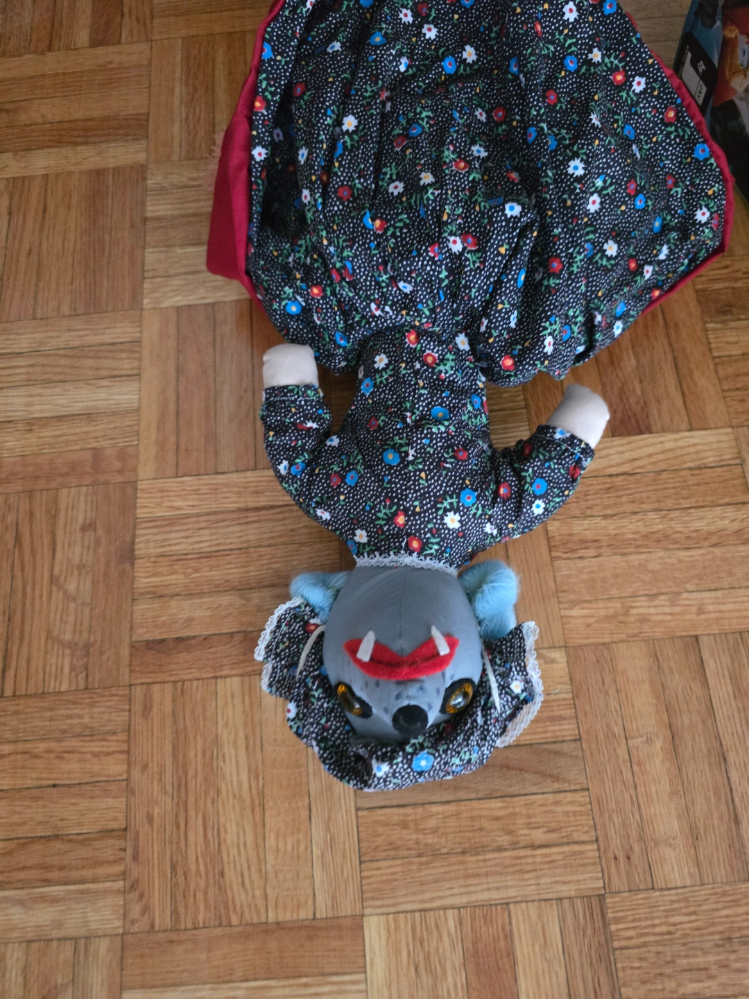 Three vintage Dippy Flip dolls. Little Red Riding Hood, Grandmother, and the Wolf. Soft fabric dolls. Collectible item.