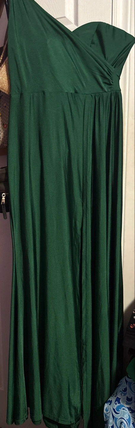 Gorgeous emerald green maxi dress. One shoulder design. Floor length. Size large. Made in China.