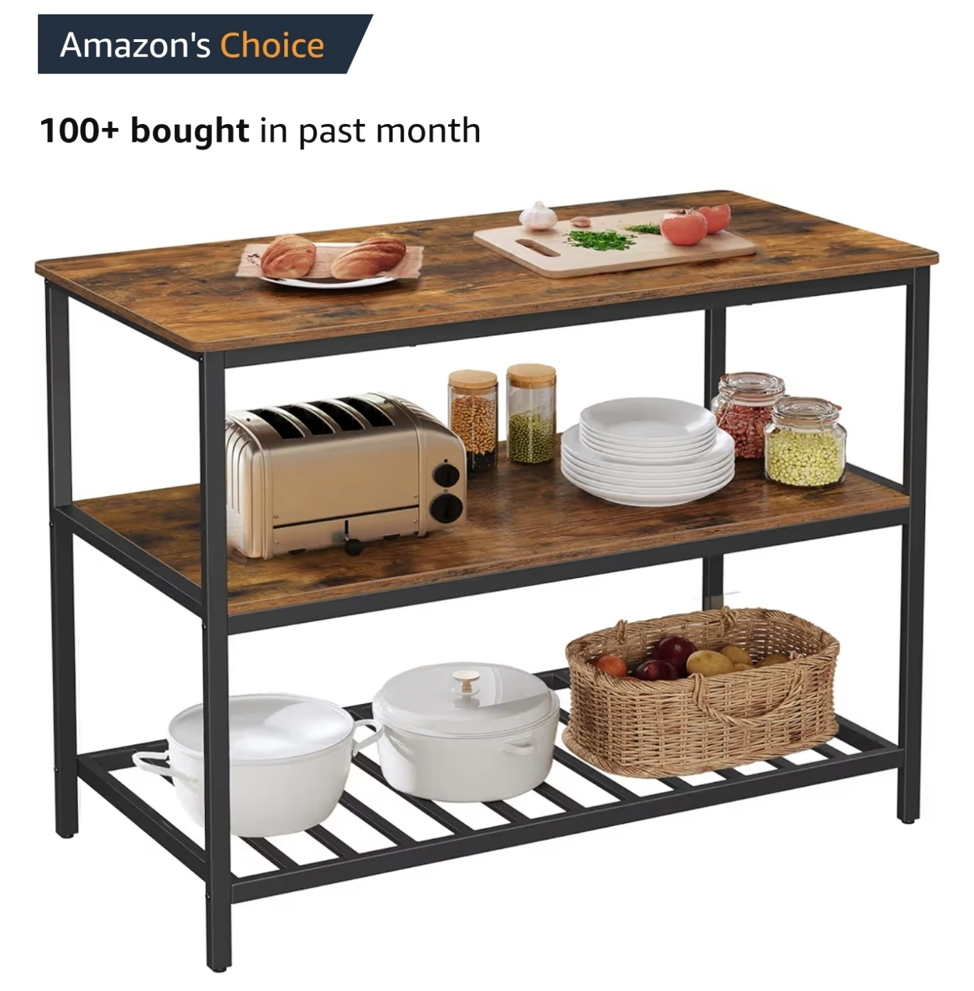 VASAGLE Kitchen Island - Rustic Brown and Black - 3-Tier Storage