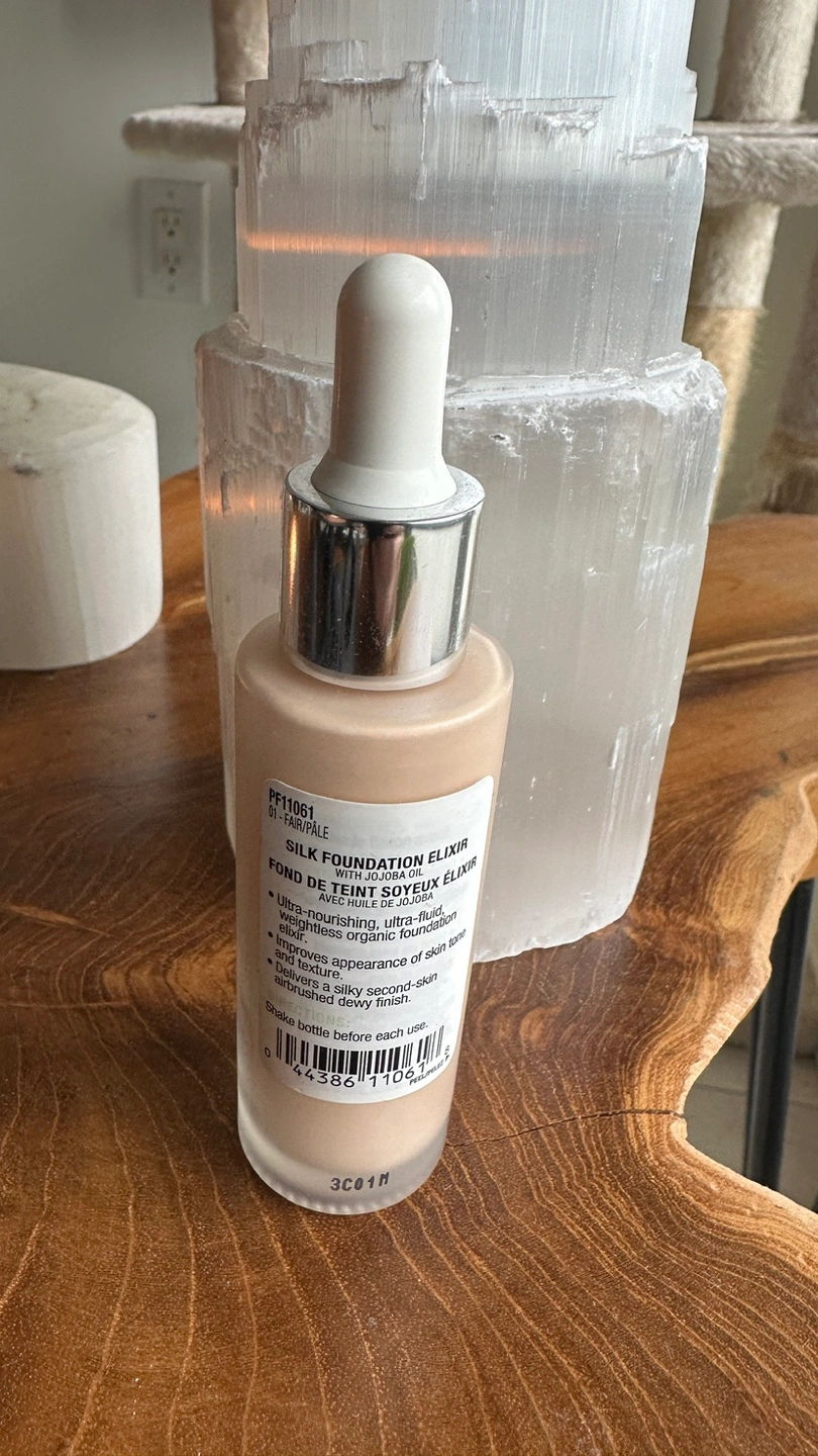 1000+Lightly used foundation. Elixir with jojoba oil. Provides a silky, second-skin finish. Weightless, nourishing, ultra-fine. Improves appearance of skin tone and texture. Gives a dewy glow. Never used.