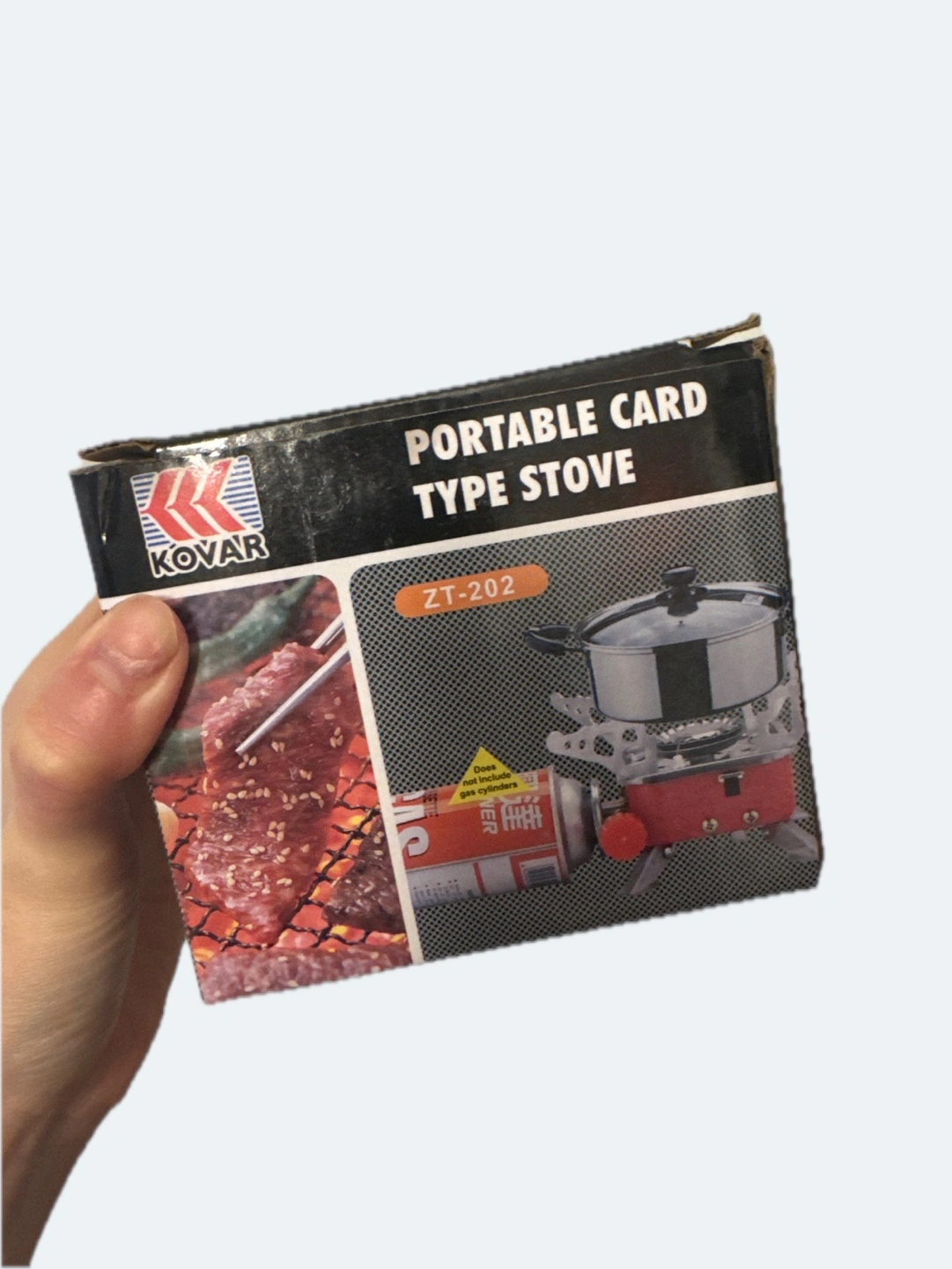 Compact and portable camping stove. Lightweight design. Piezoelectric ignition. Uses butane propane fuel. Great for outdoor cooking.