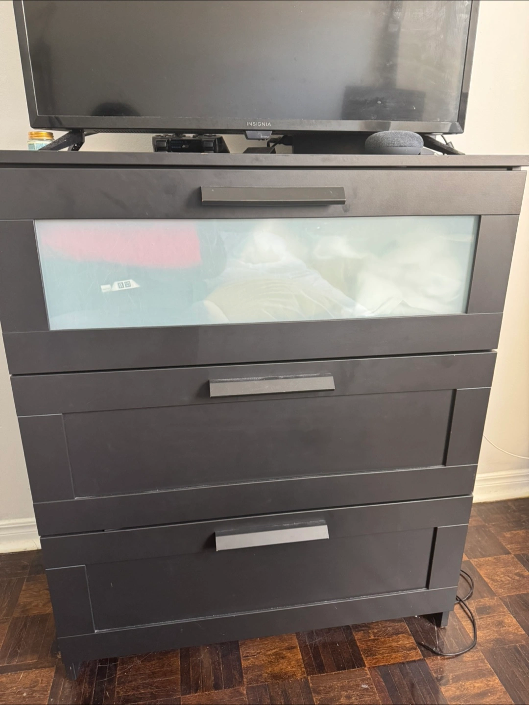 Buy & SellIKEA Brimnes 3-drawer dresserIKEA Brimnes 3-drawer dresser$65Black dresser. Three drawers, frosted glass top drawer. damage to side . Good used condition otherwise.ConditionOkayWHERE TO MEETCheck LocationView MapSELLERCoralieIslington312 reviews2 chats·0 favorites·118 viewsSEND CHAT TO SELLERHi Coralie! I’m interested in your listing.Hi Coralie! I’m interested in your listing.Get the Karrot app to chatSign In to chat