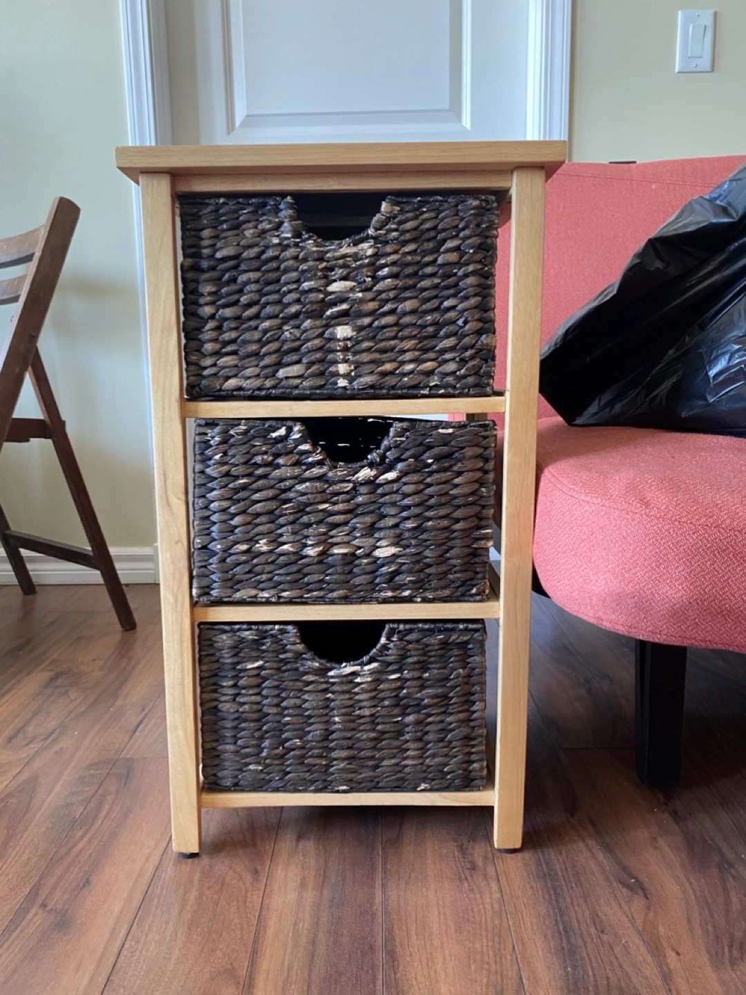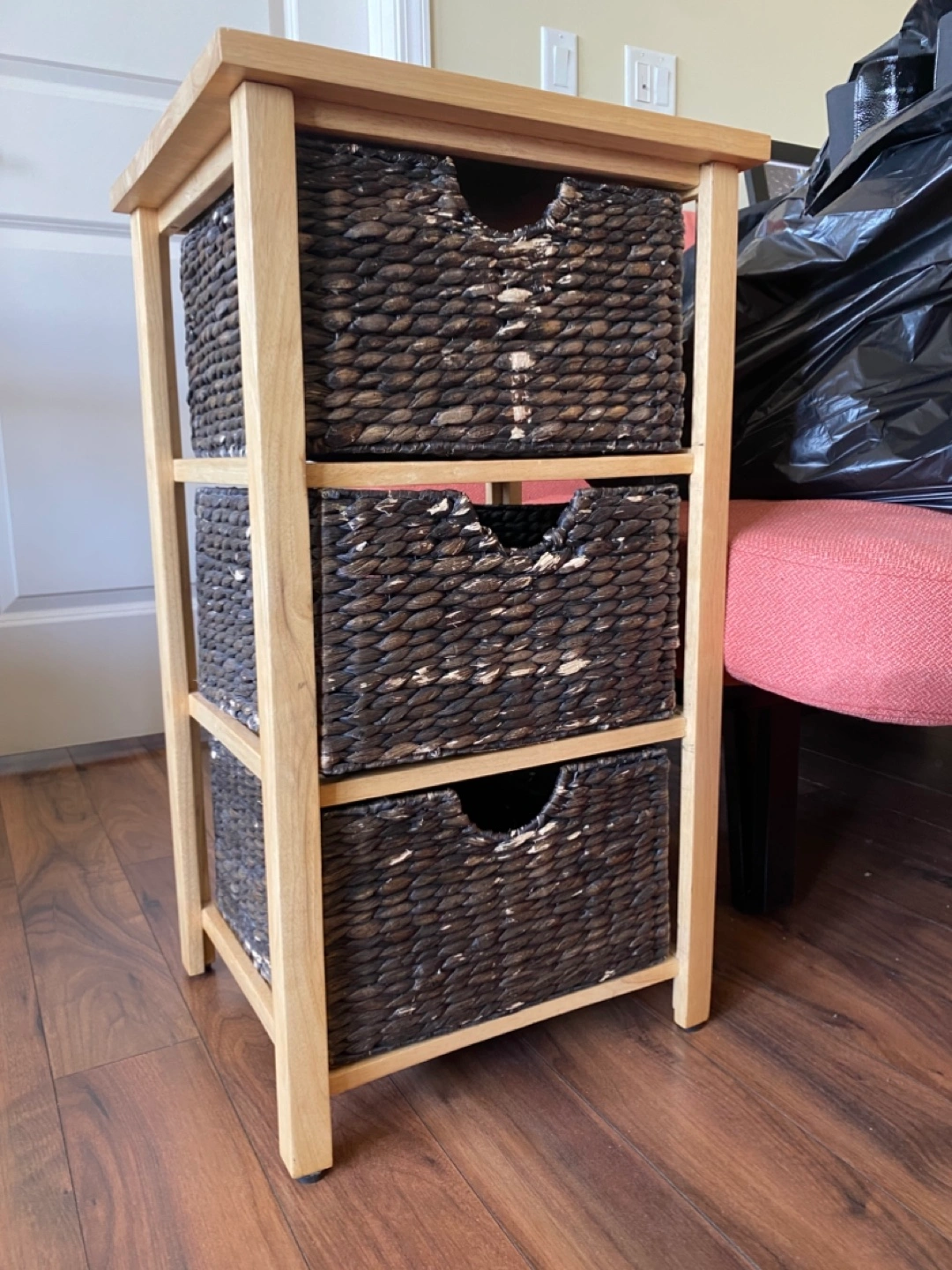 Three-Drawer Storage Unit with Wicker Baskets