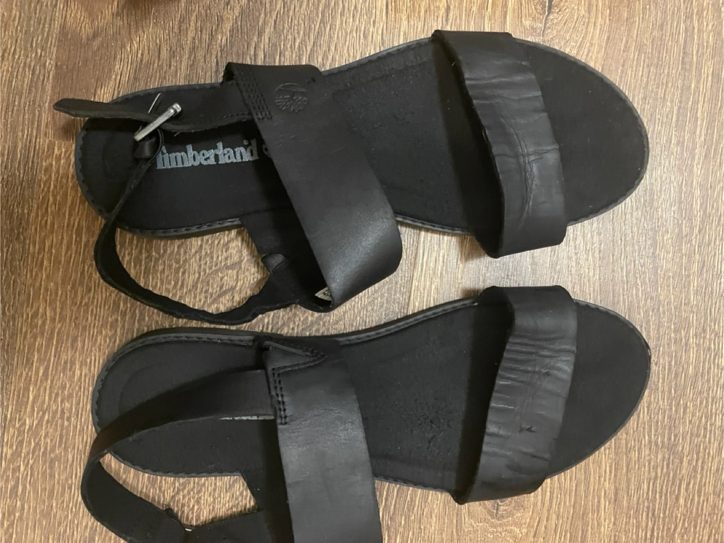 558Pair of black leather sandals. Adjustable ankle strap. Women's size 9. Great quality