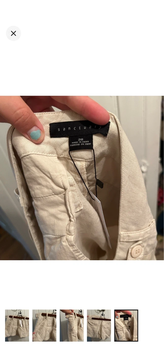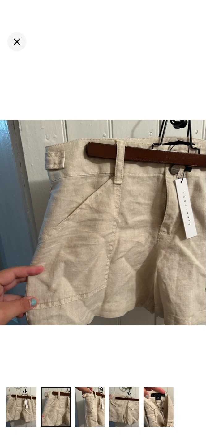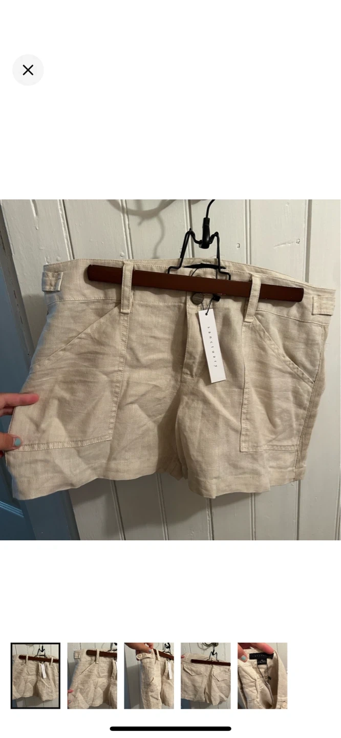 Sanctuary brand (for revolve). Tan linen shorts. Thinner material. Size women’s 28. Brand new with tags $50