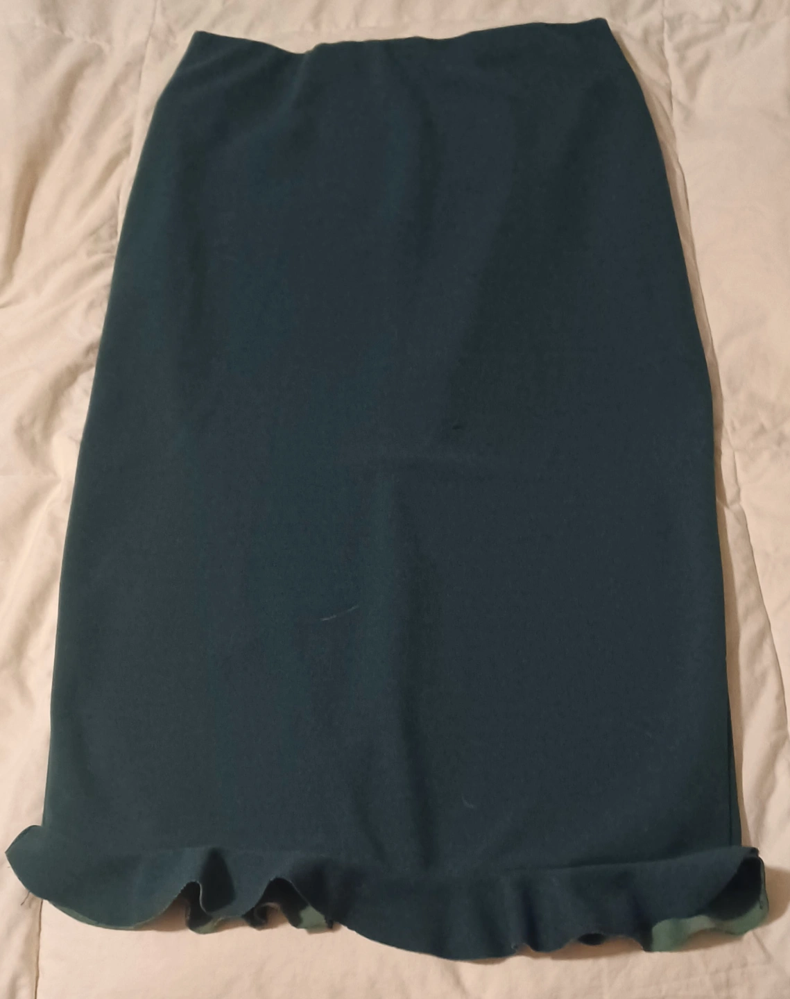 Dark Green Pencil Skirt with Ruffle Hem