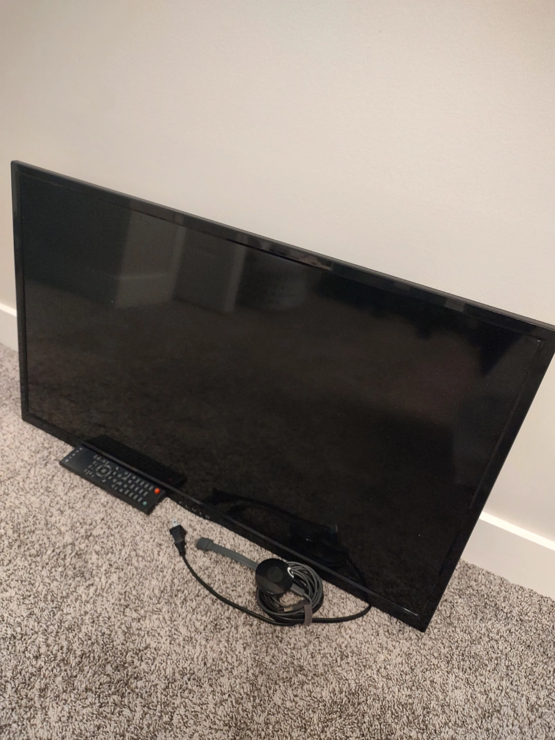 fluid TV with remote, Google Chromecast, hooks for wall mount