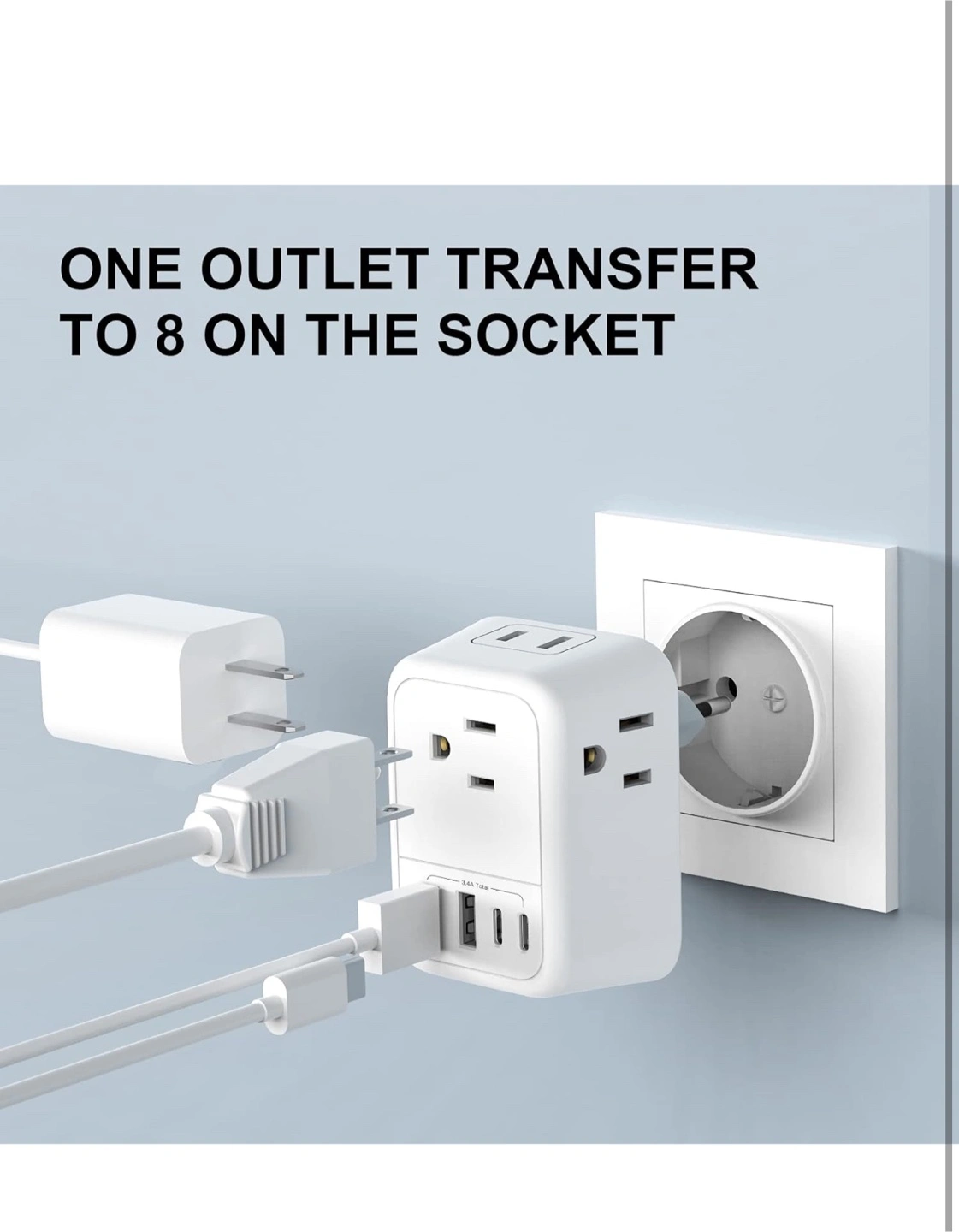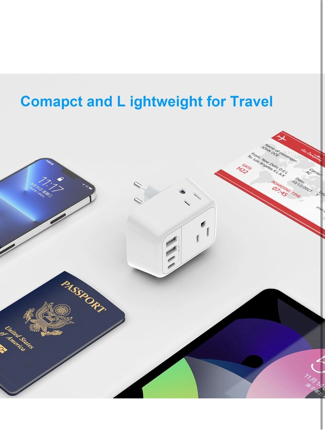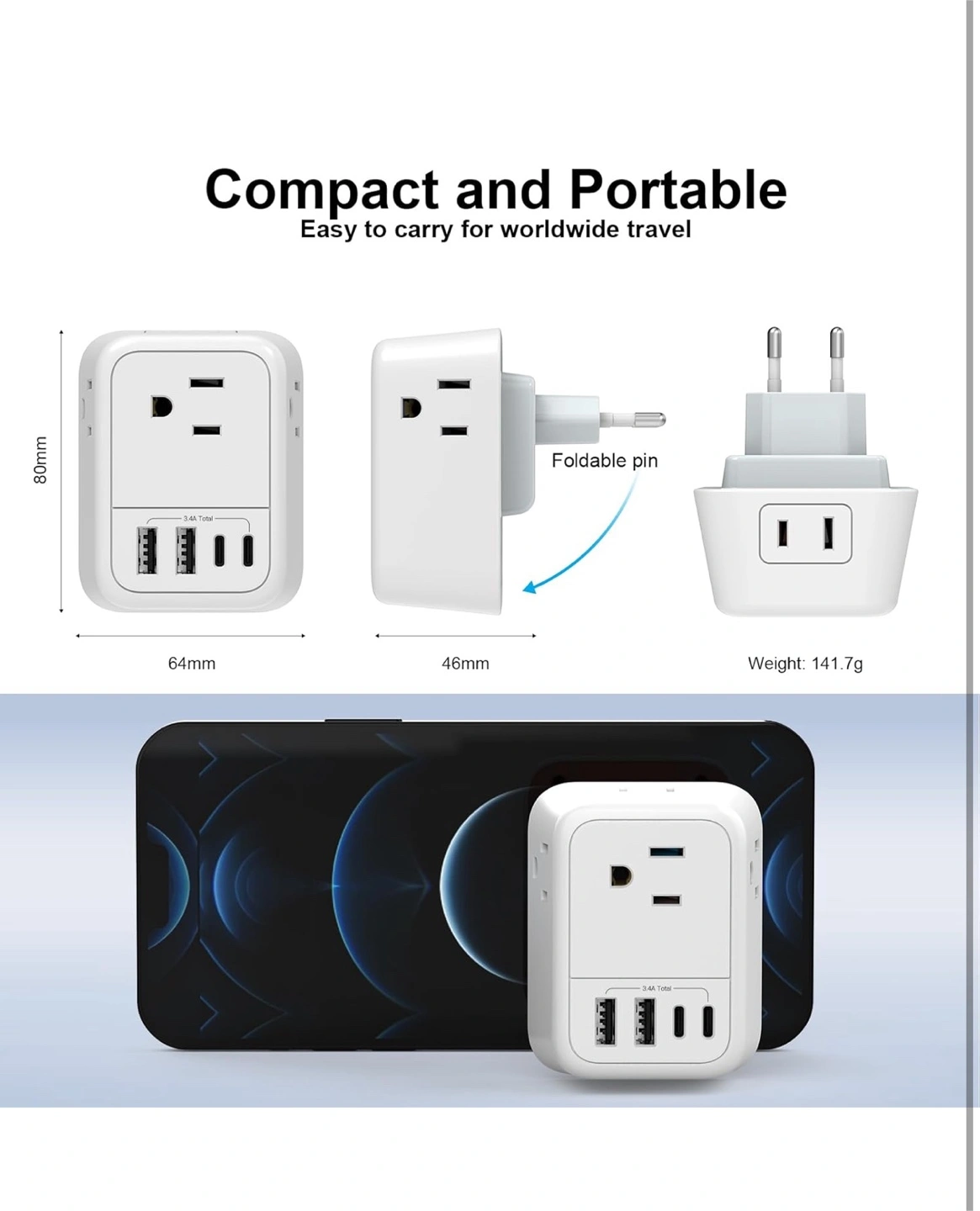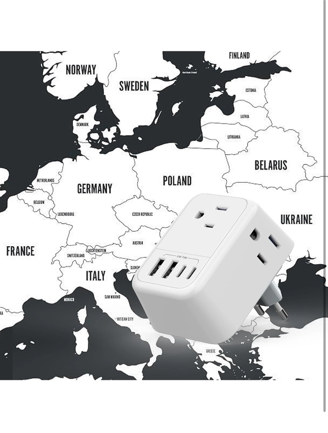 548Travel Plug Adapter with 4 AC Outlets and 4 USB Ports - European and International Power Adapter, Type C Plug Adapter Travel Essentials to Most Europe EU Spain Italy France Germany [1 Pack]