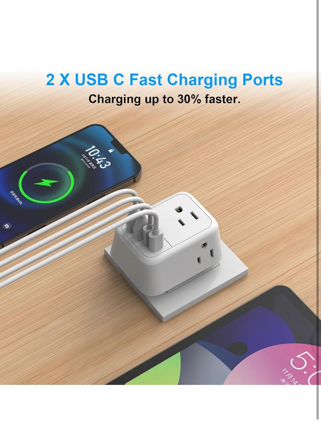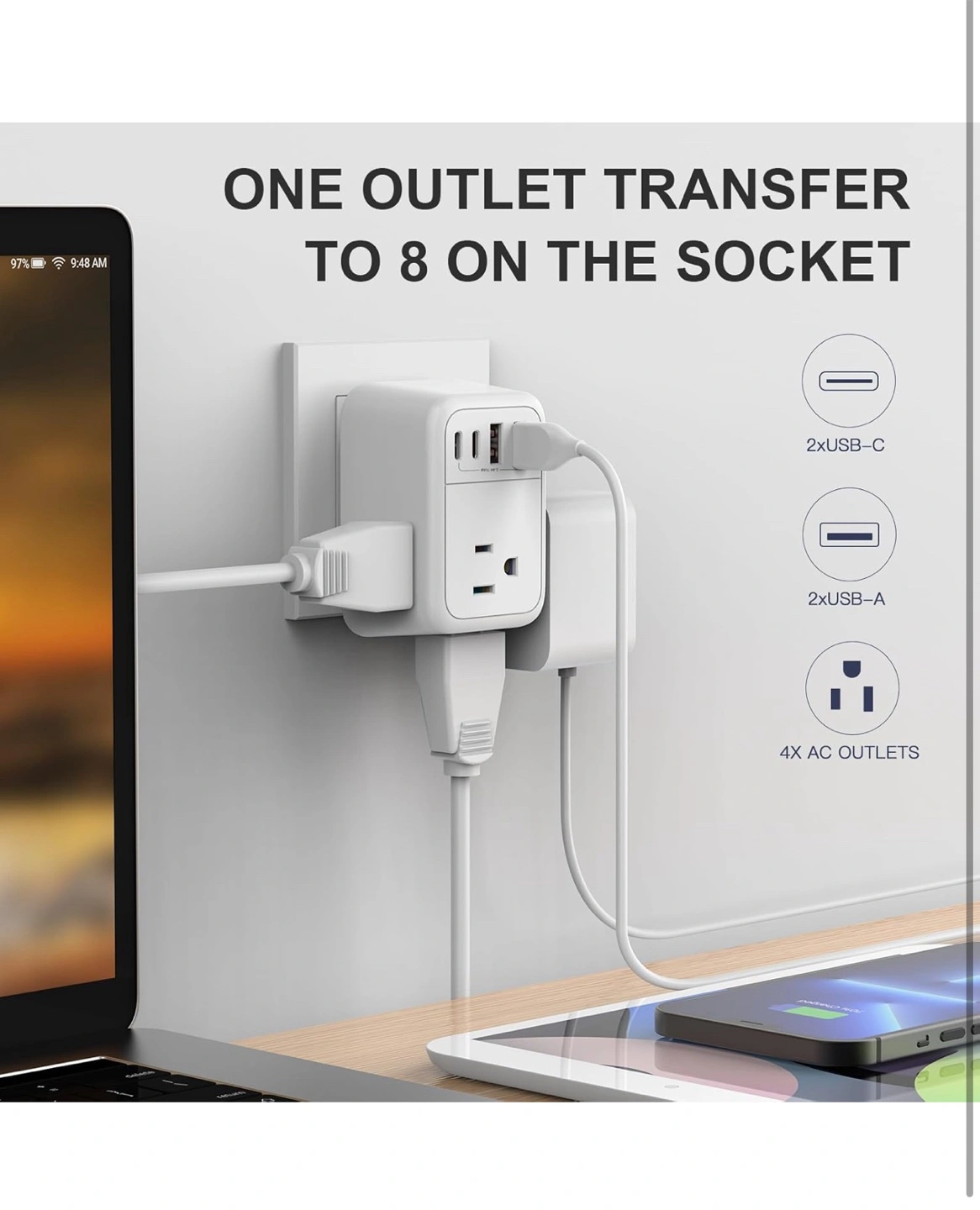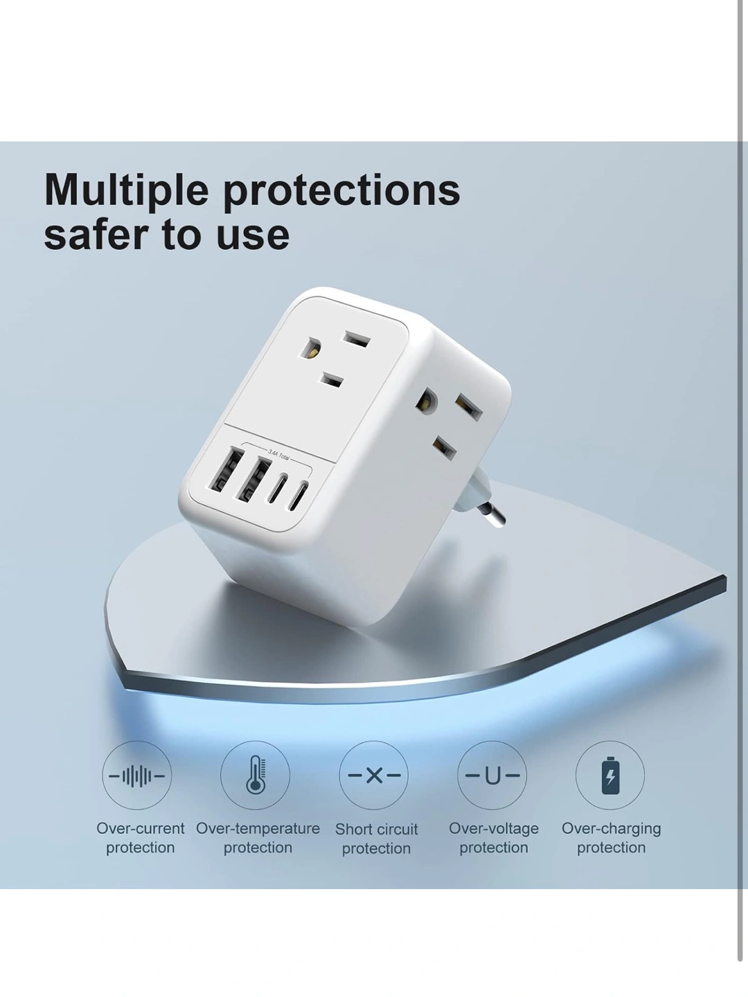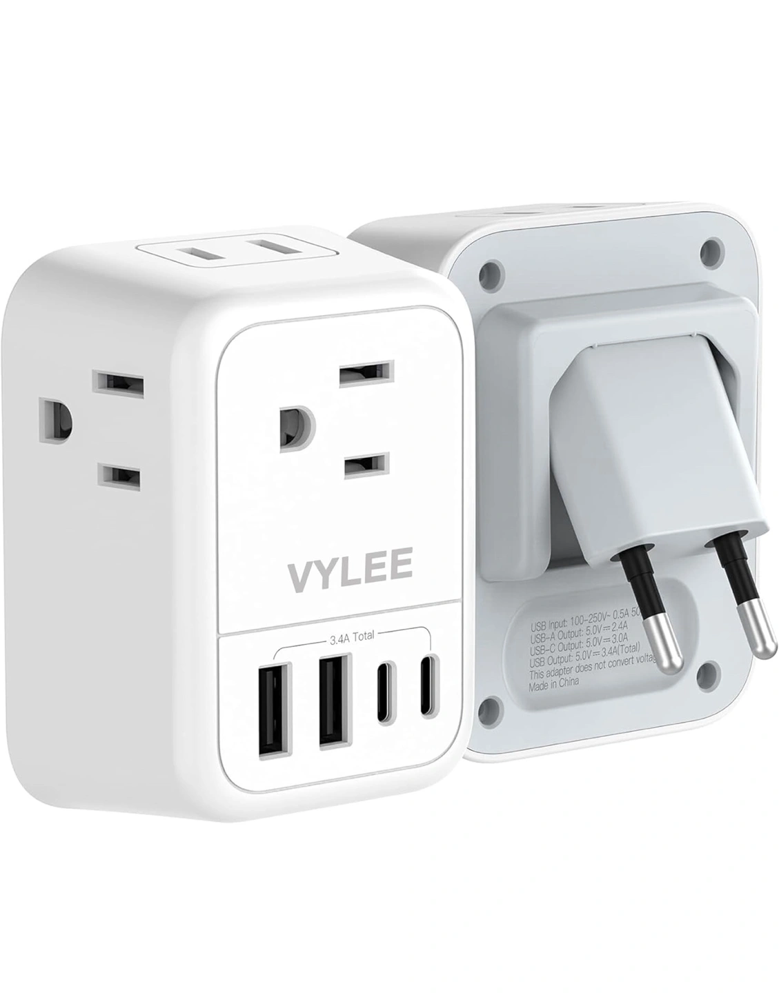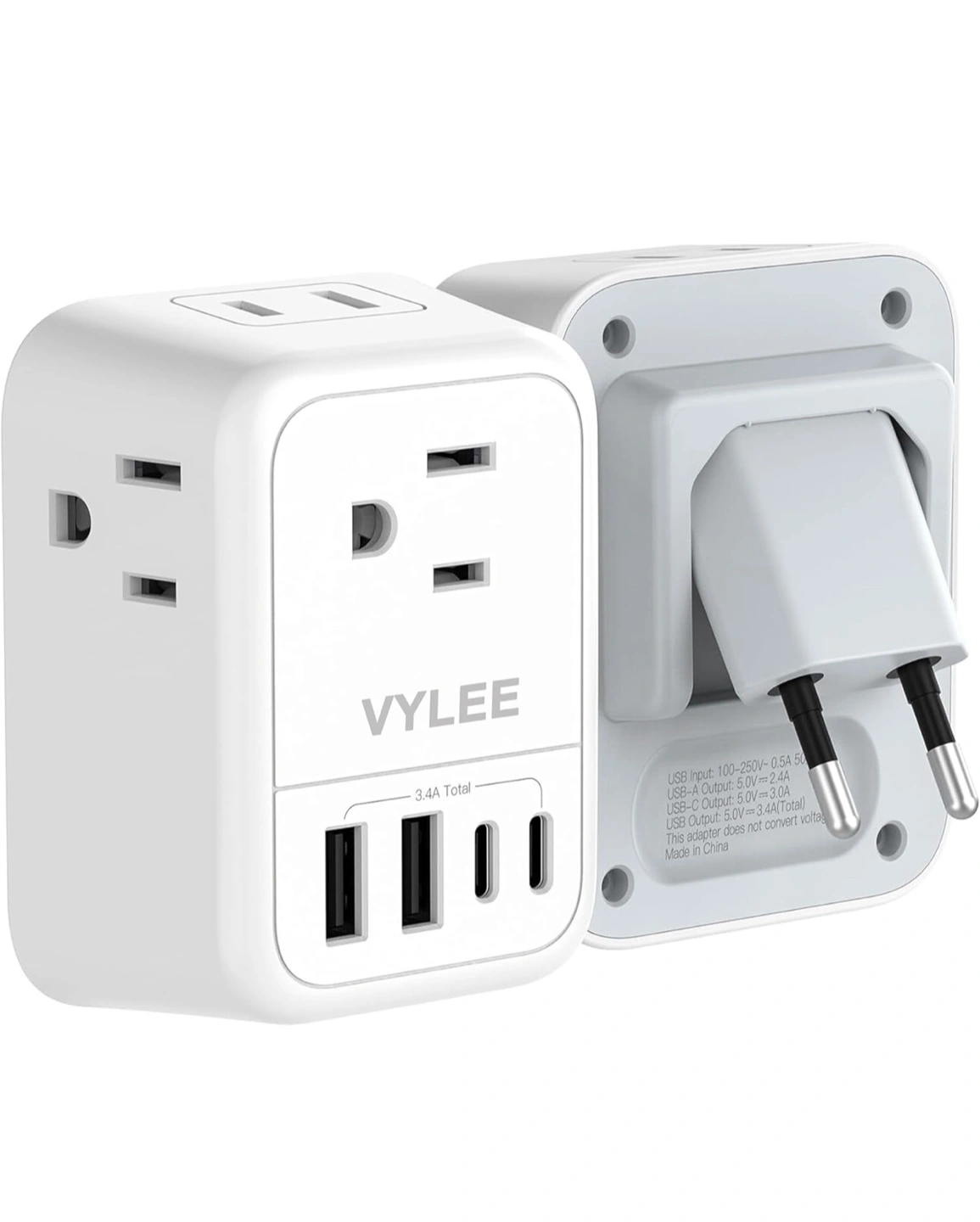 548Travel Plug Adapter with 4 AC Outlets and 4 USB Ports - European and International Power Adapter, Type C Plug Adapter Travel Essentials to Most Europe EU Spain Italy France Germany [1 Pack]