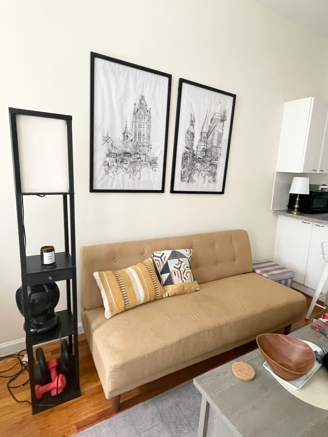 Located on the 4th floor of a walkup with small elevator. (3 flights of stairs)