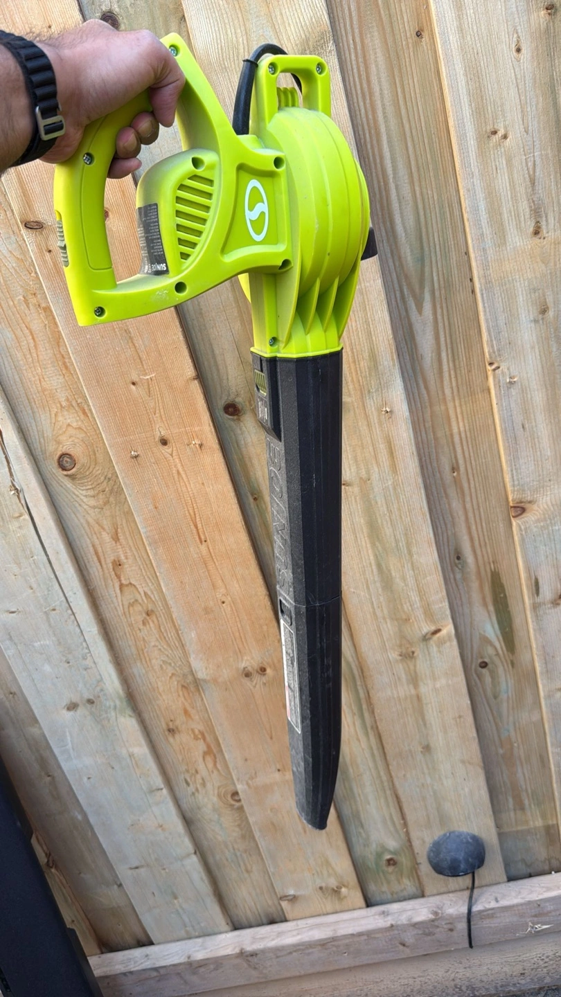Electric leaf blower. Compact design. Good for smaller yards. Model SB698E-P.