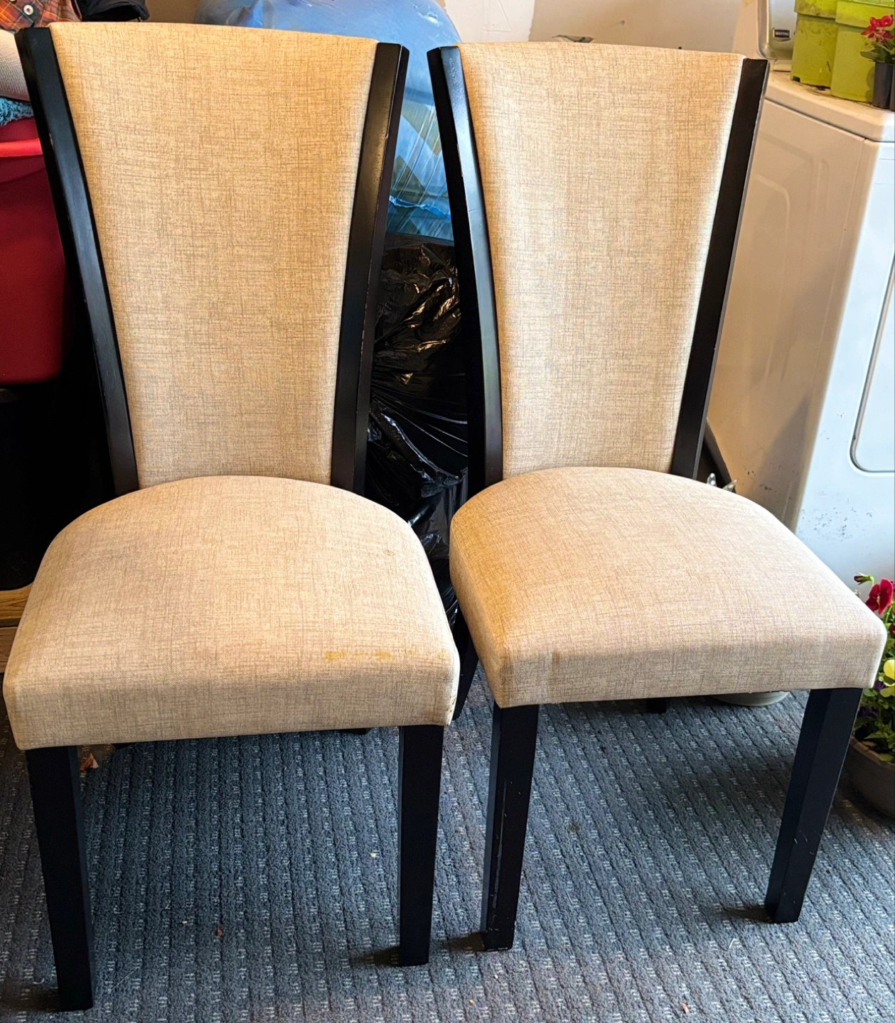4 Pair of Beige Fabric Dining Chairs with Black Legs