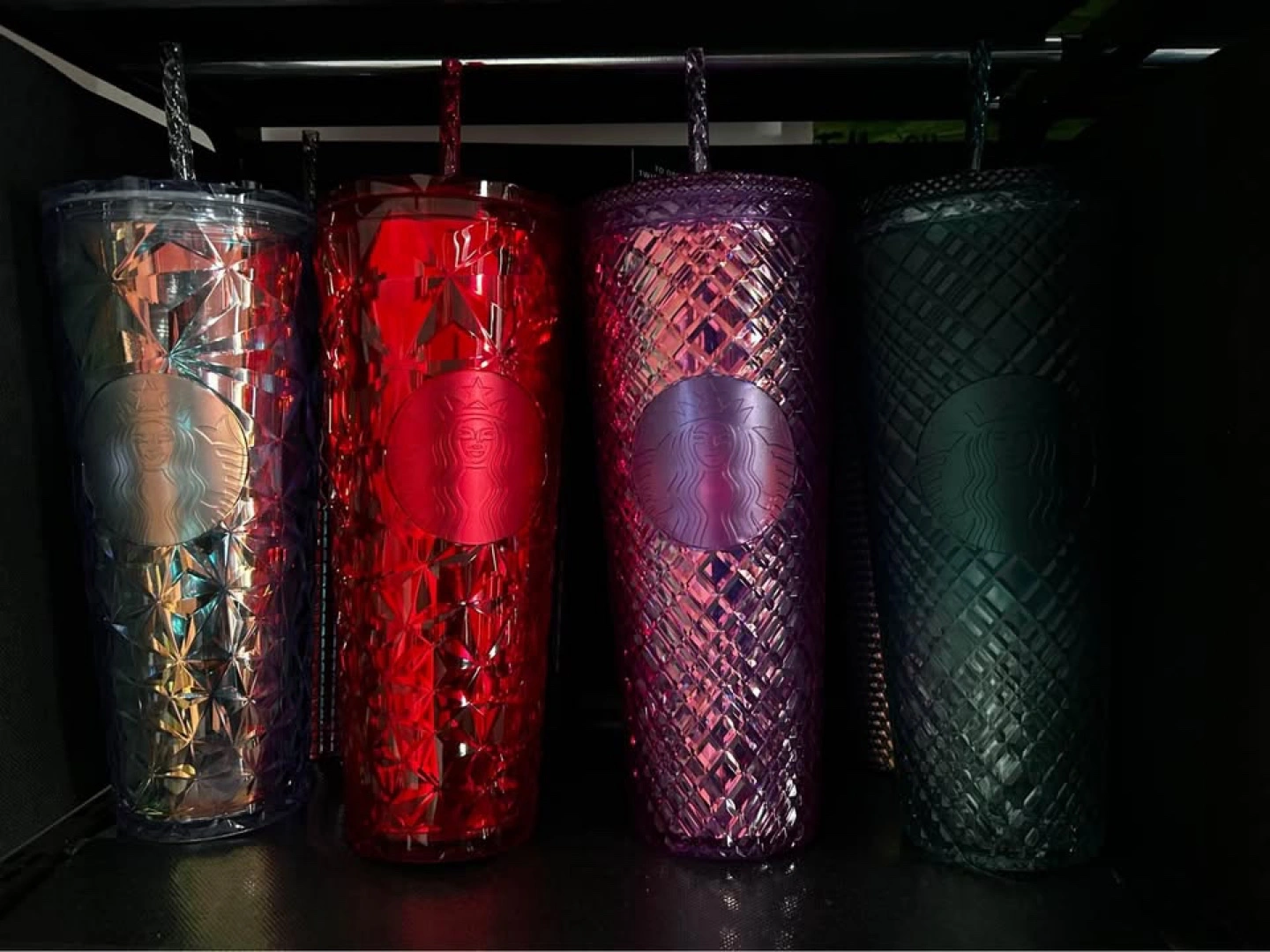 Collection of Starbucks cold cups. Various colours and designs available. Perfect for your favourite cold beverage. Check images for details.